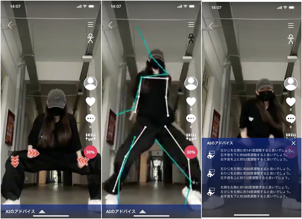 「HILFE AI」は、AI技術を活用した革新的なダンス学習アプリです。ユーザーが自分の好きなダンス動画を登録すると、AIがその動きを計測し、リアルタイムで自分の姿と重ねて表示します。この「Skill Up機能」により、ユーザーはゲーム感覚で動きをマスターすることができます。