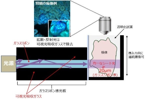 日本電気硝子株式会社(本社:滋賀県大津市 社長:岸本暁)は、東京大学大学院理学系研究科付属フォトンサイエンス研究機構、同大学大学院工学系研究科付属光量子科学研究センター、株式会社ミユキ技研、フォトンテックイノベーションズ株式会社と共同で、当社のガラスリボンを用いて、革新的な光シート顕微鏡光源HandySPIMを開発しました。これにより、高解像度の断面画像を誰でも簡単に得られるようになり、病理・バイオサイエンス分野で広く応用されることが期待されています。