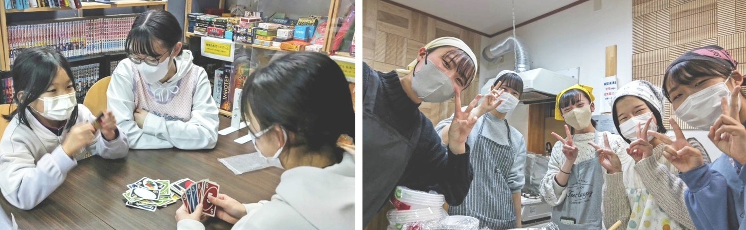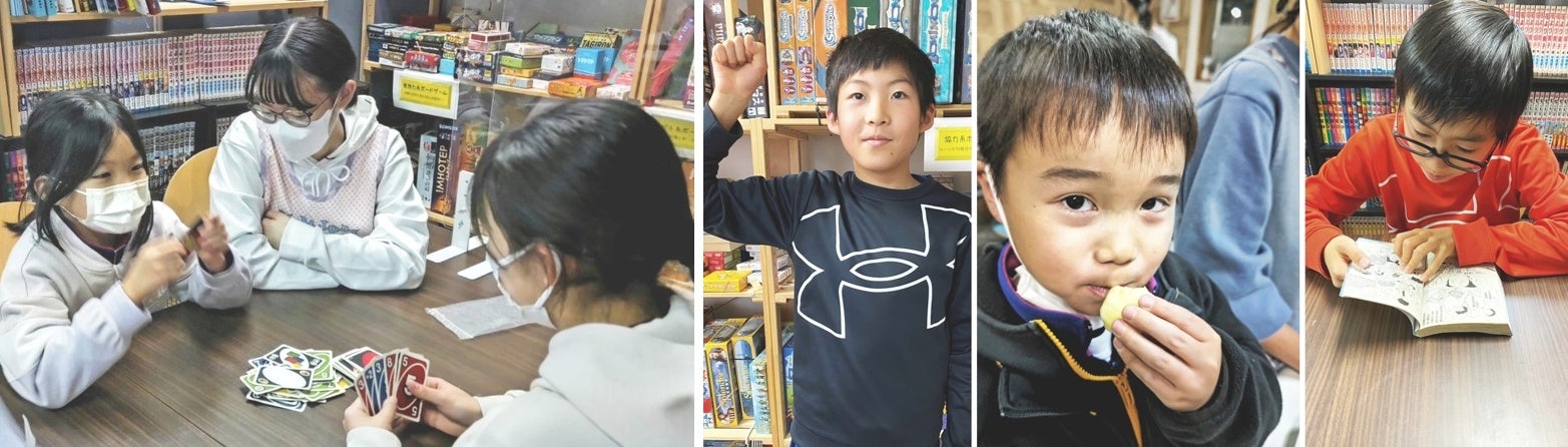 「上田おけまーるジュニアセンター」は、漫画やボードゲームを取り揃え、軽食を取れるよう冷蔵庫や湯沸かしポットを常設し、思い思いに過ごせる環境を整えています。また毎週水曜日、上田高校の学生が小中学生に向けて学習支援を行います。子どもや保護者向けの困りごと相談窓口も開設し、地域の子育てを総合的にサポートします。