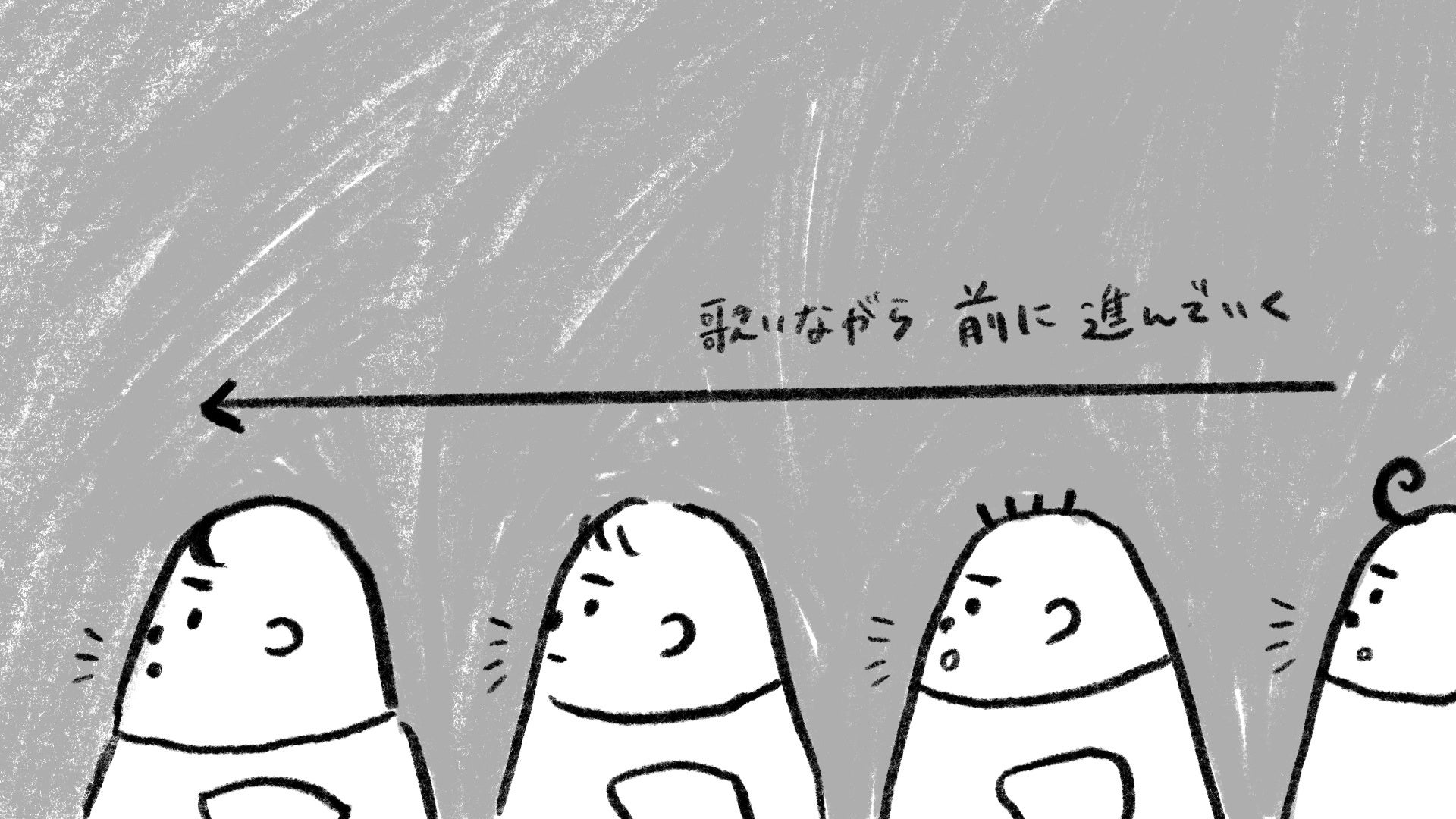 飯田さんから「喃語の歌をつくりたくて……」とご相談をいただいた時、「私もです!」とお答えしました(笑)。というのも私には10カ月の息子がいるのですが、まだ言葉にならないおしゃべりがとってもかわいくて、携帯で録りため、その声で何かつくれたらなぁと思っていたので、お話をいただいた時はすごくビックリして嬉しかったことを覚えています。そして実際に秋田さんから送られてきたデモを聞いた時、尊すぎて涙がでました。こんなにもピュアで一生懸命な歌は今までにあっただろうかと。あまりにも歌が尊すぎて、どうアニメーションで表現しようか、この歌を表現するに値するイラストにしなくては……という葛藤もありました(たくさんアイデアを出しました!)。