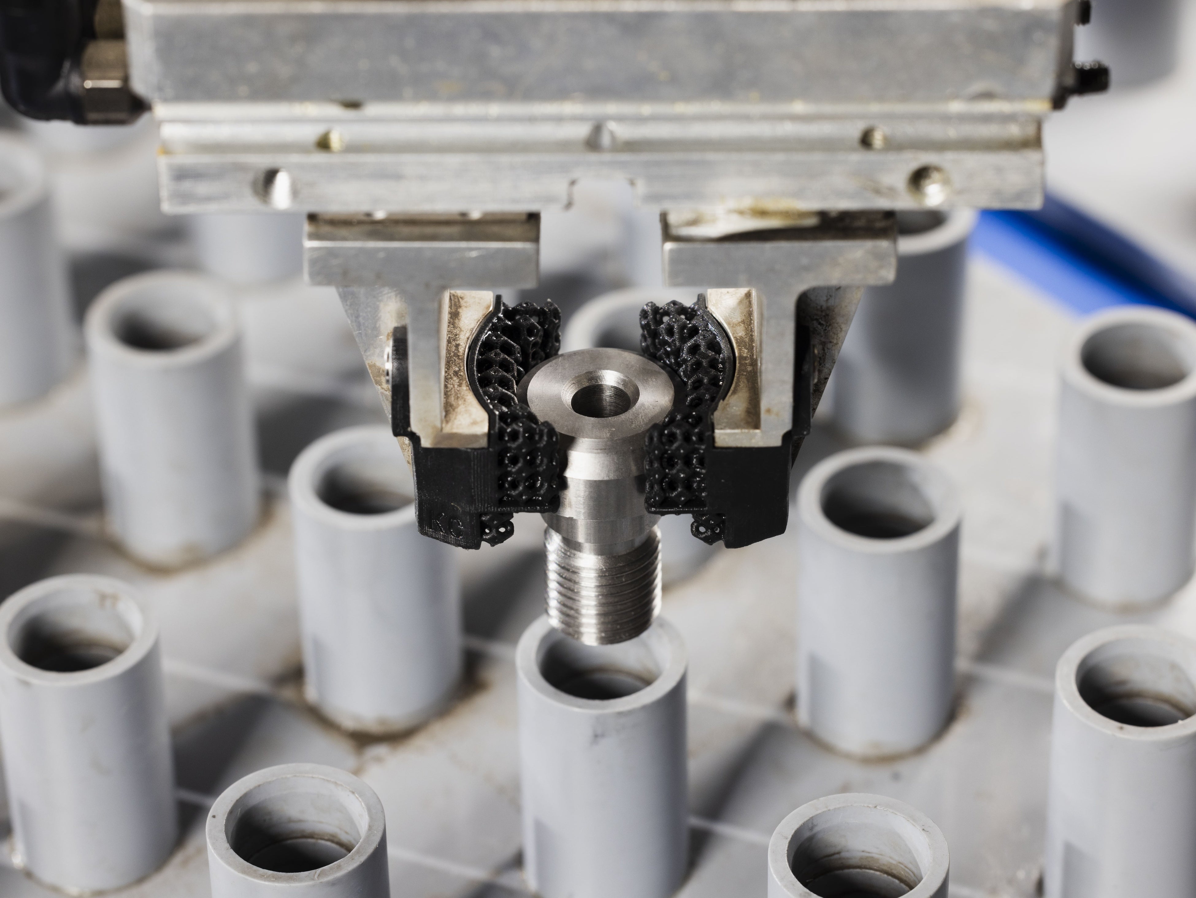また、同社の柔軟指については、実際に当社工場(福岡県糟屋郡)でも自社製品「ロータリージョイント」の製造工程で使用させていただいております。それまでは、把持対象のワーク毎のロボットハンドが必要でした。柔軟指を使用することで、複数のワークに対して段取り替えをすることなくスムーズに把持ができ、チョコ停などのトラブルもゼロになっています。