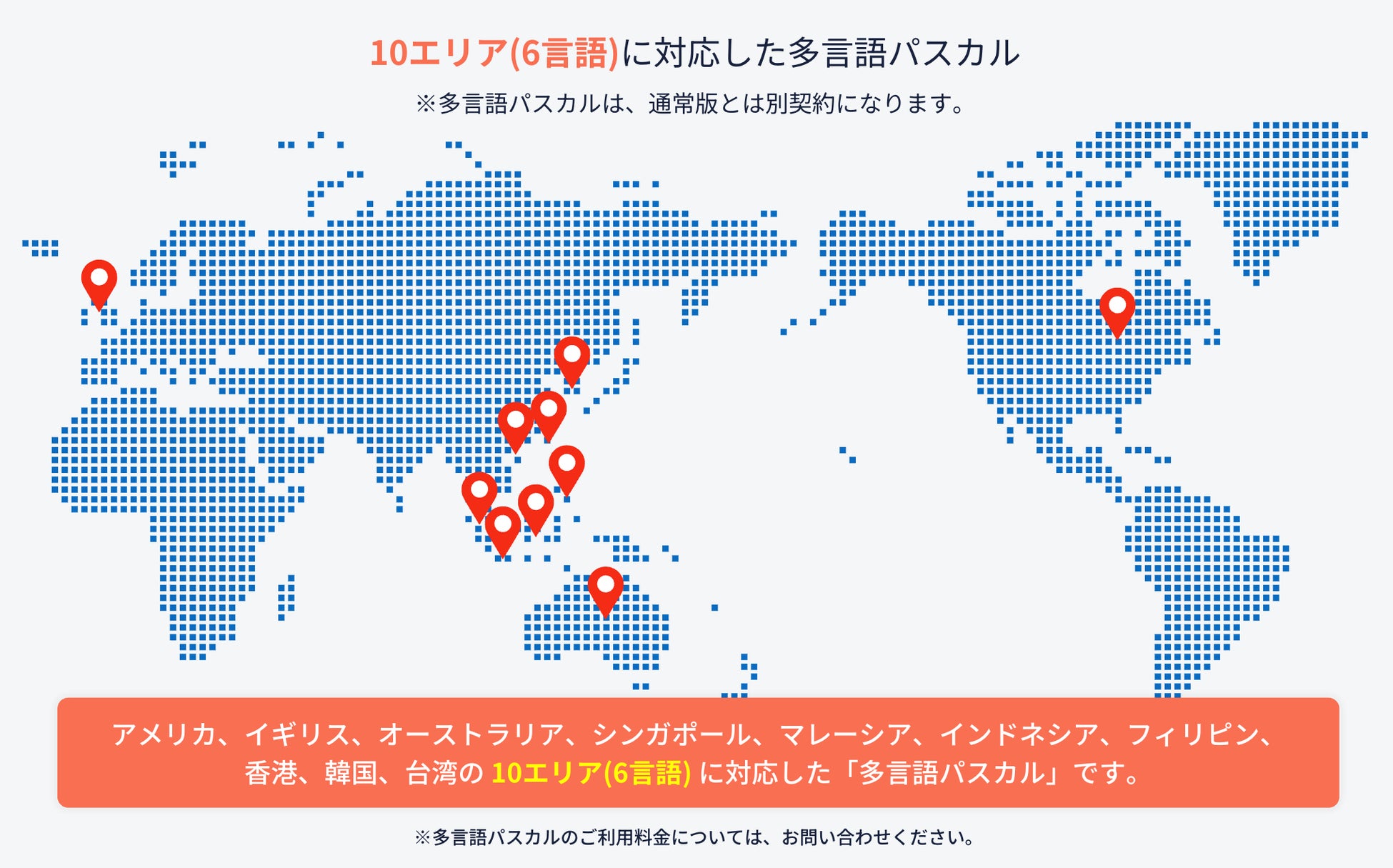 ※多言語パスカルは、通常版とは別契約となります。詳細な料金やご利用条件については、以下のメールアドレスまでお問い合わせください。