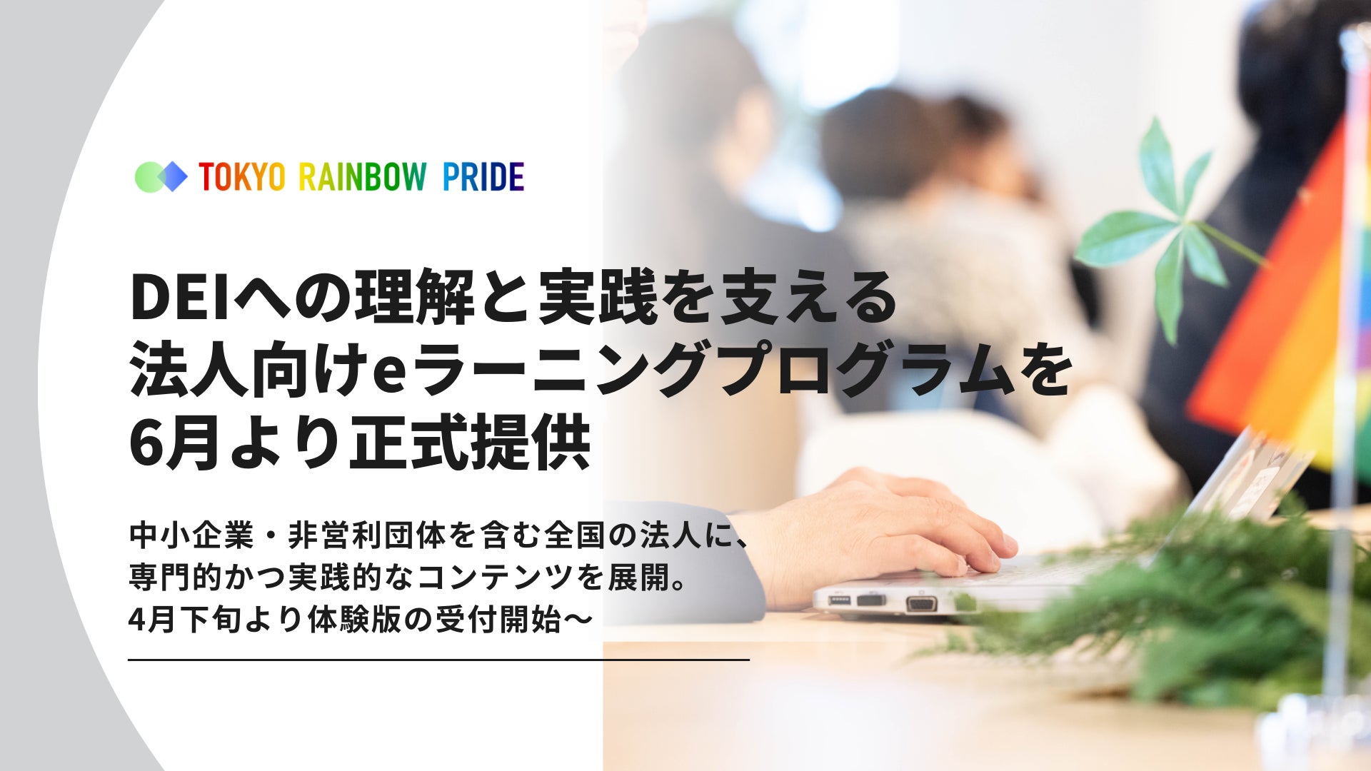 特定非営利活動法人東京レインボープライド(所在地:東京都新宿区、共同代表理事:山田 なつみ、佐藤 ユウコ、以下TRP)は、DEI(Diversity:多様性、Equity:公正性、Inclusion:包括性)への理解を深め、現場での実践につなげることを目的とした、法人向けのeラーニングプログラムを、2025年6月より正式提供を開始します。これに先立ち、4月下旬より体験版(無料)の提供を開始する予定です。