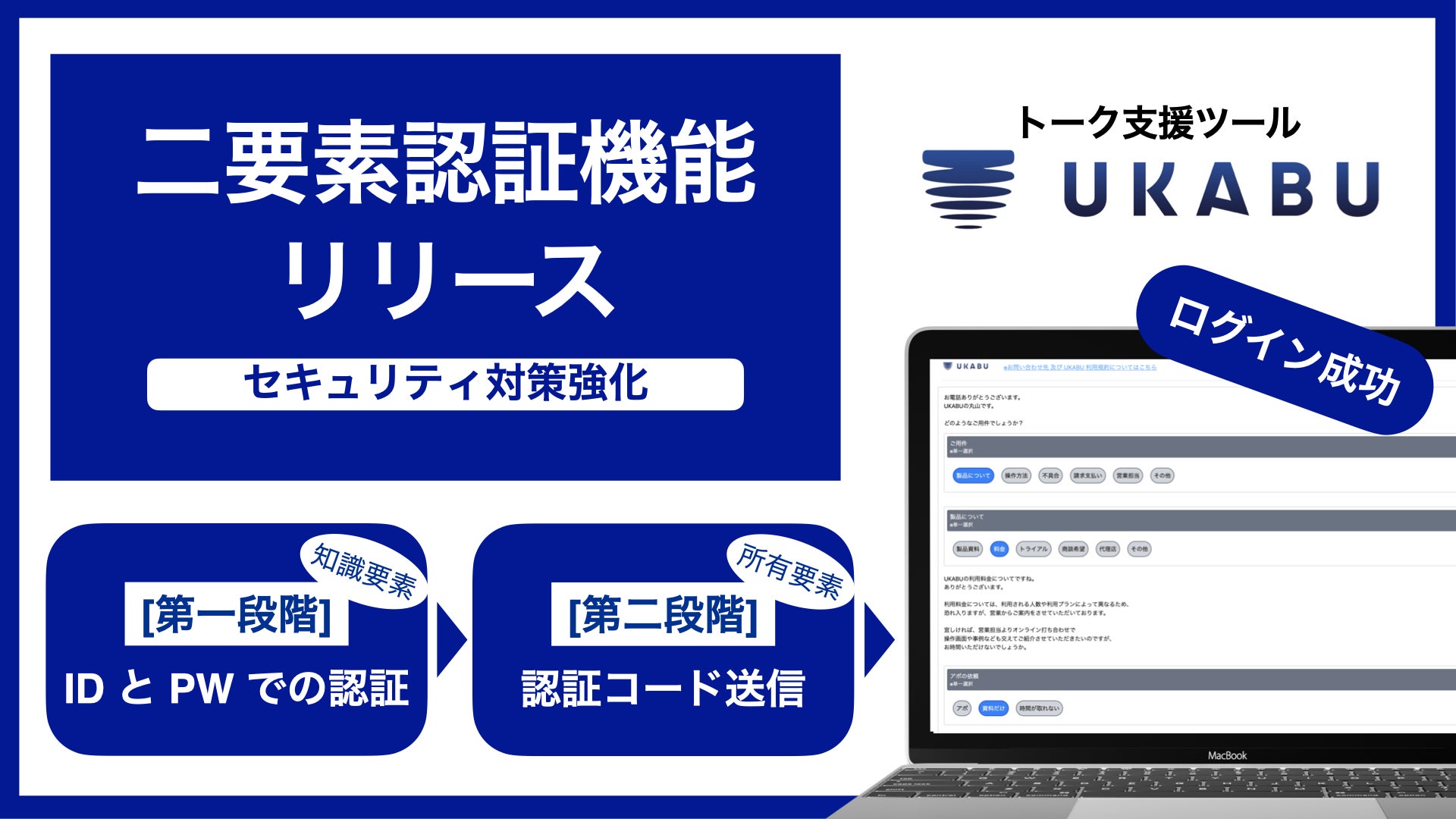 トーク支援ツール「UKABU」が、不正ログインを防止する「二要素認証」機能をリリース