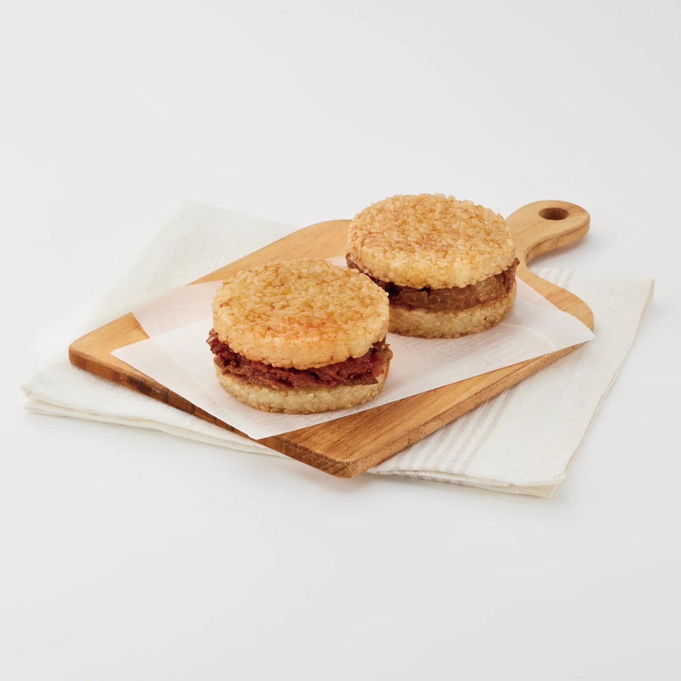 表面はカリッと、中はふっくら仕上げた醤油味のライスバンズで、醤油、コチジャン、豆板醤、りんごピューレなどで味付けした大豆ミートを挟んだ、焼肉味のプラントベースライスバーガーです。(本品に含まれるアレルギー物質:小麦・大豆・りんご)