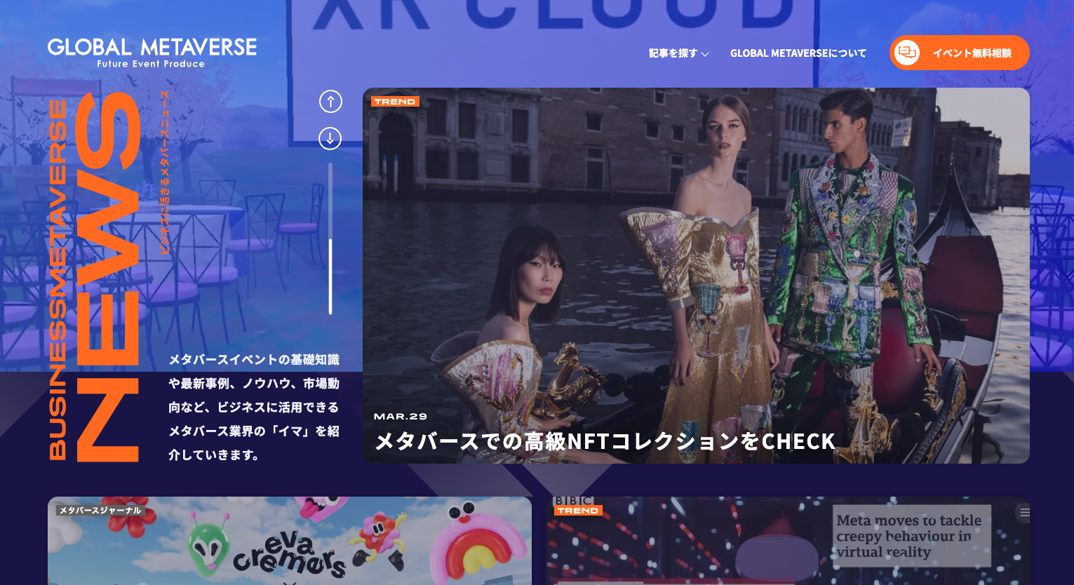 メタバースイベント専門会社「グローバルメタバース」、公式HPを公開
