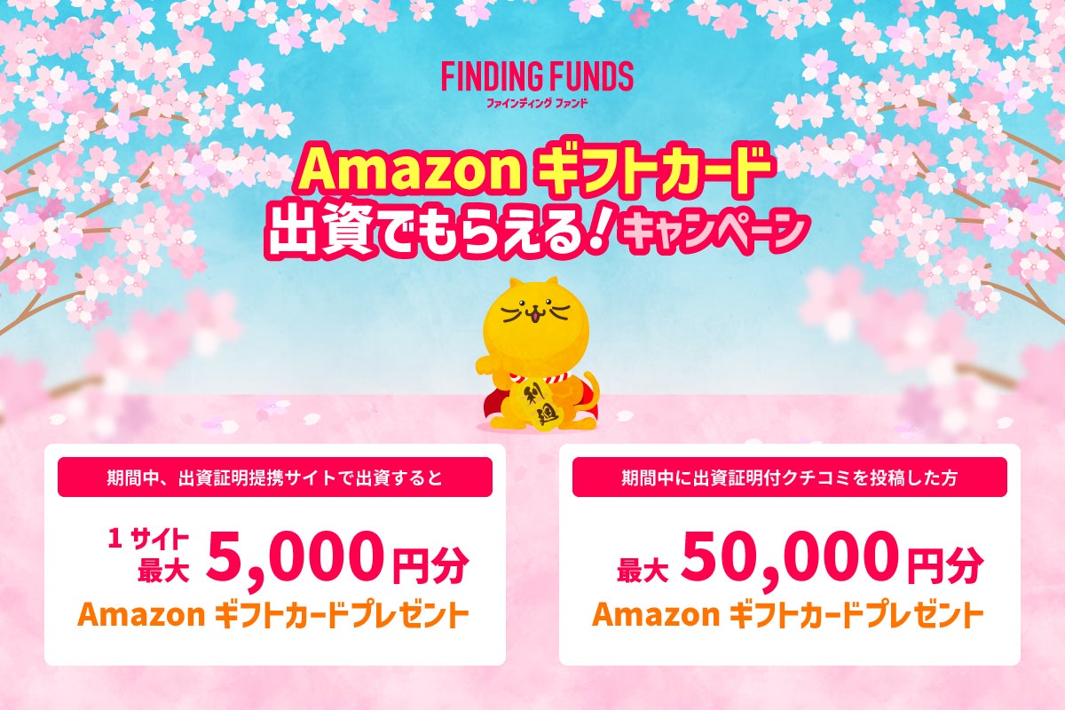 株式会社レプスが運営する不動産クラウドファンディングポータルサイト「ファインディングファンド」は、2024年4月1日より対象者にもれなくAmazonギフトをプレゼントするキャンペーンを開催します。