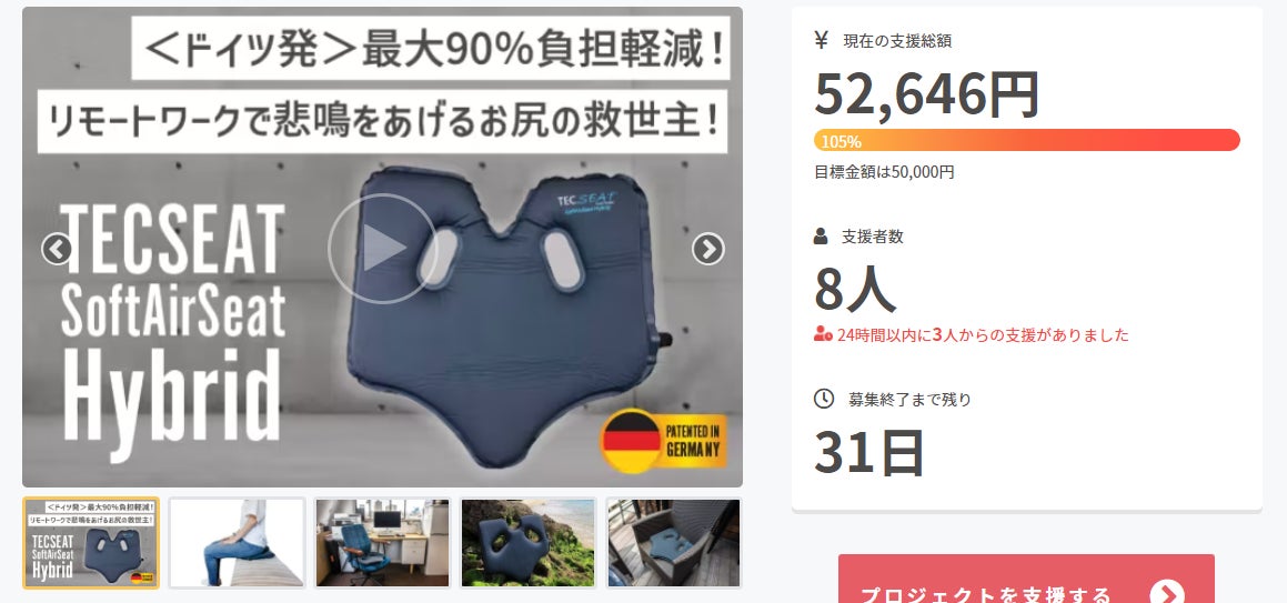 【早くも目標達成】お尻の救世主、TECSEATSoftairSeatHybrid(テックシートソフトエアシートハイブリッド)キャンプファイヤーにて好評発売中!