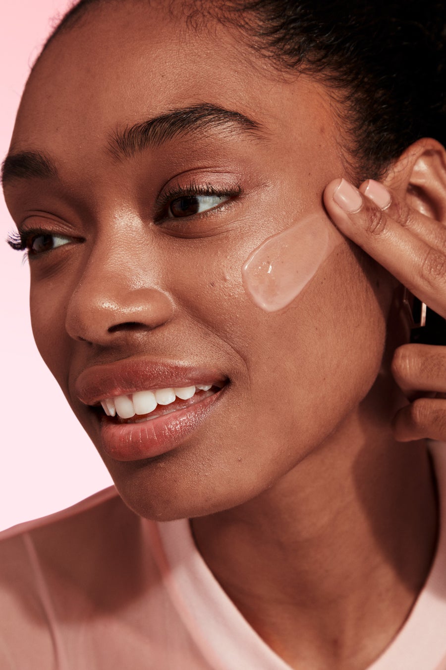 トロンとやわらかなピンクのジェリー状で、肌への均一な塗布も
