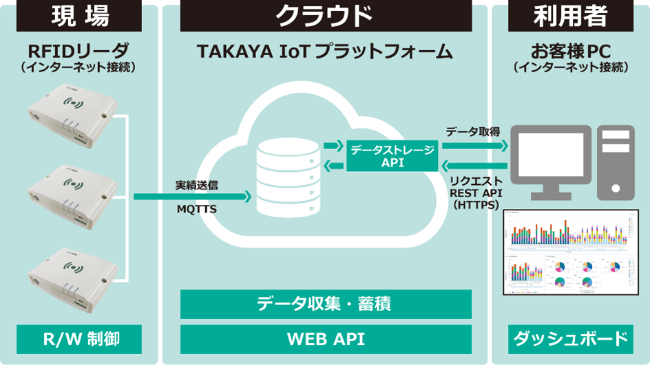 資料ダウンロード | IoTプラットフォーム▷▷▷ https://www.takaya.co.jp/itsolution/service/cloudservice/iot-platform-service RFID機器▷▷▷ https://www.product.takaya.co.jp/rfid/products/IoT_edge.html |