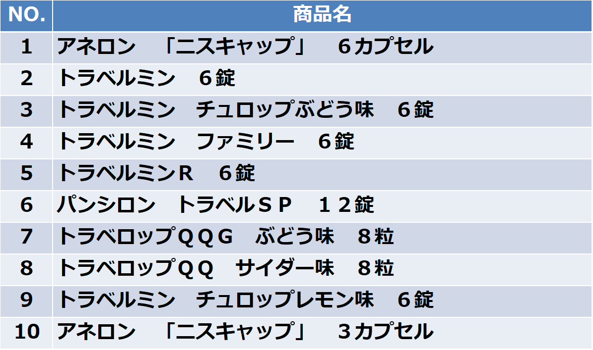 ◆SOO加盟ドラッグストア 2023年6月度 「乗り物酔い薬」カテゴリー売上ランキング