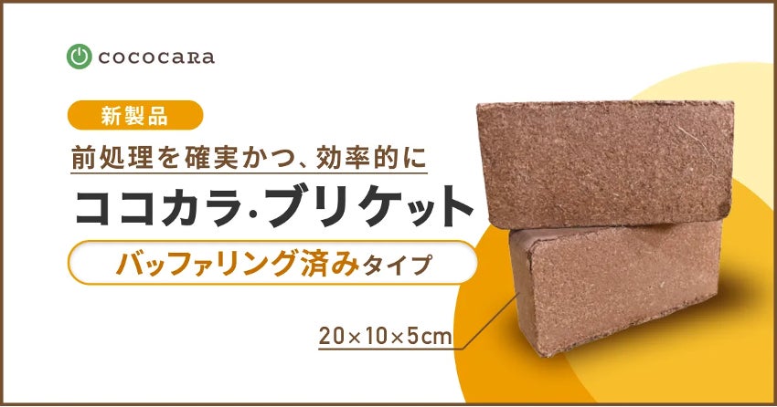 農業における持続可能性を⽬指し、施設園芸向けのココカラピート(ヤシガラ培土)の製造販売を手がけるココカラ合同会社(本社:東京都中央区、CEO :⼤原秀基 以下ココカラ)は、農作業の効率化につながる新製品、「ココカラ・ブリケット バッファリング済みタイプ」を新発売いたしました。