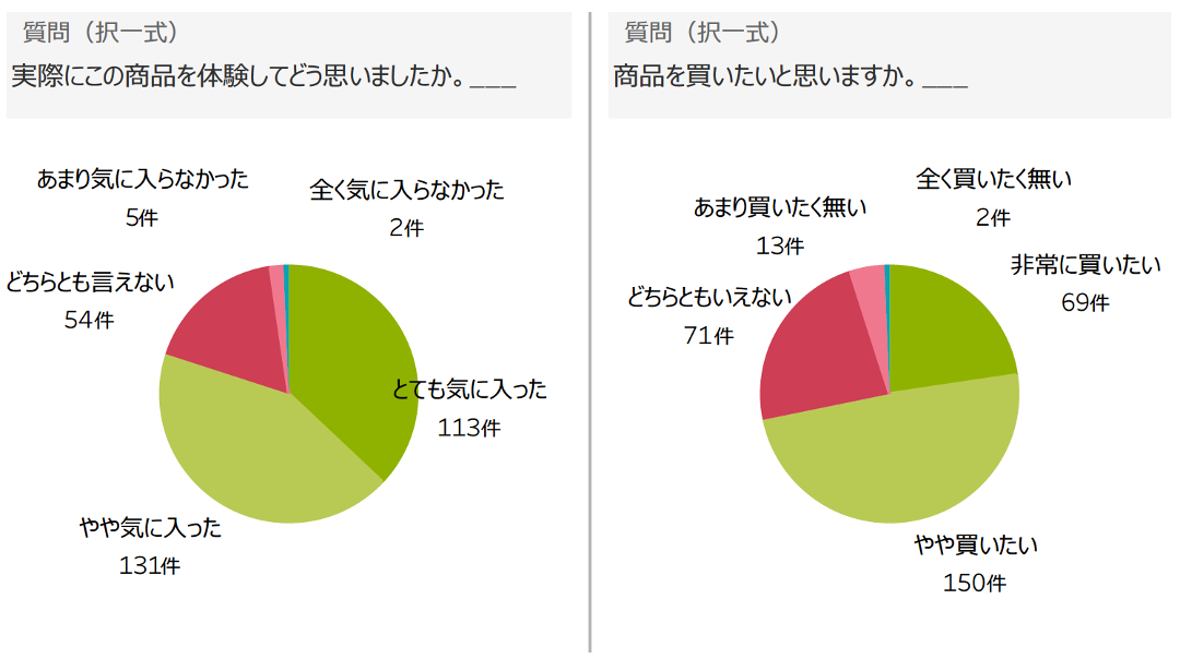 7〜8割の人が「気に入った」「買いたいと思う」と回答