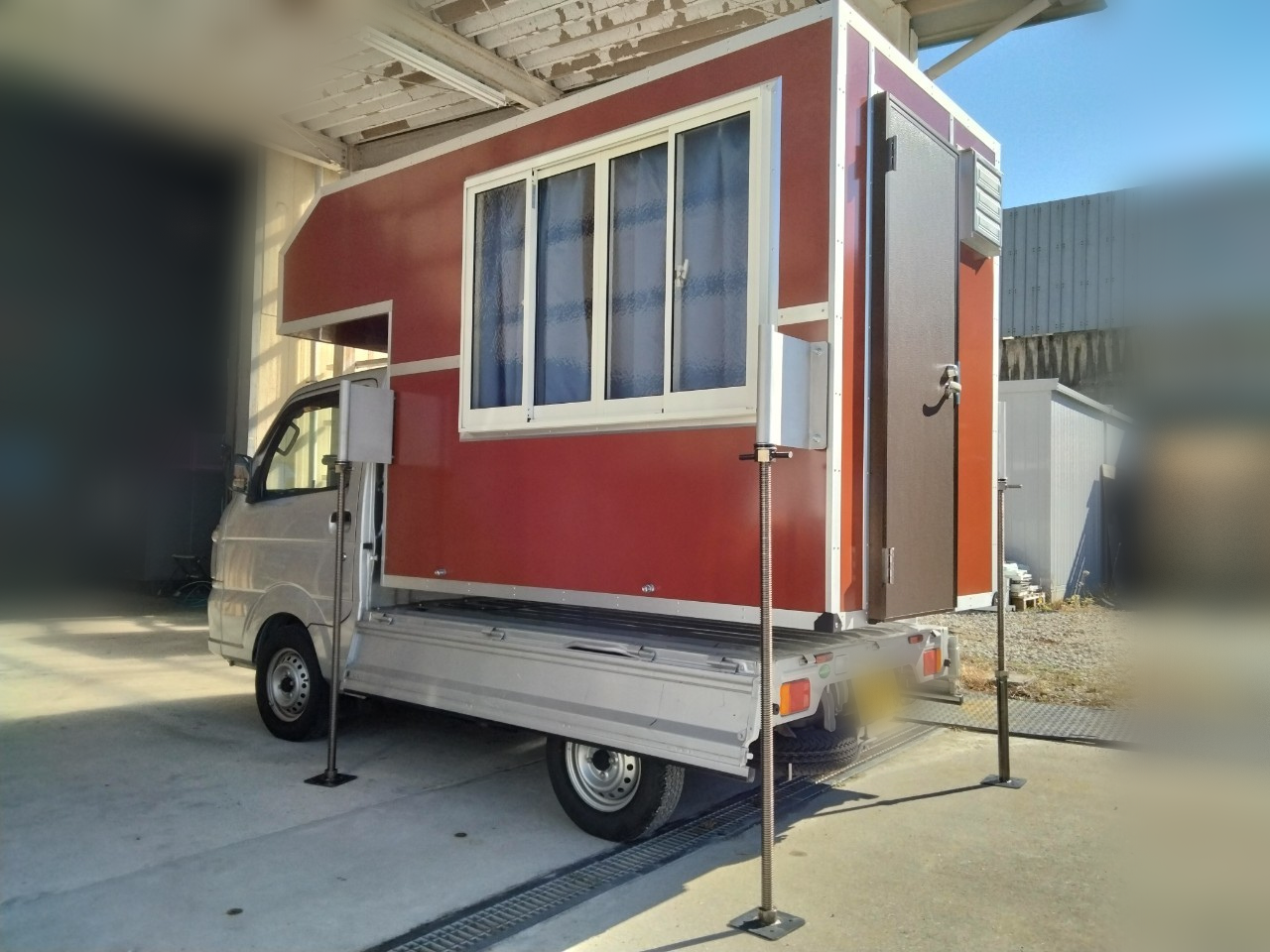 「トラベルハウス」の商標で軽トラ積載用キャンピングシェルを製造販売する株式会社自遊空間(社長 坂本竜也)は、「トラベルハウス」を軽トラの荷台から取外し、簡単に地表に下ろすことができる「昇降式自立架台」を開発し、
