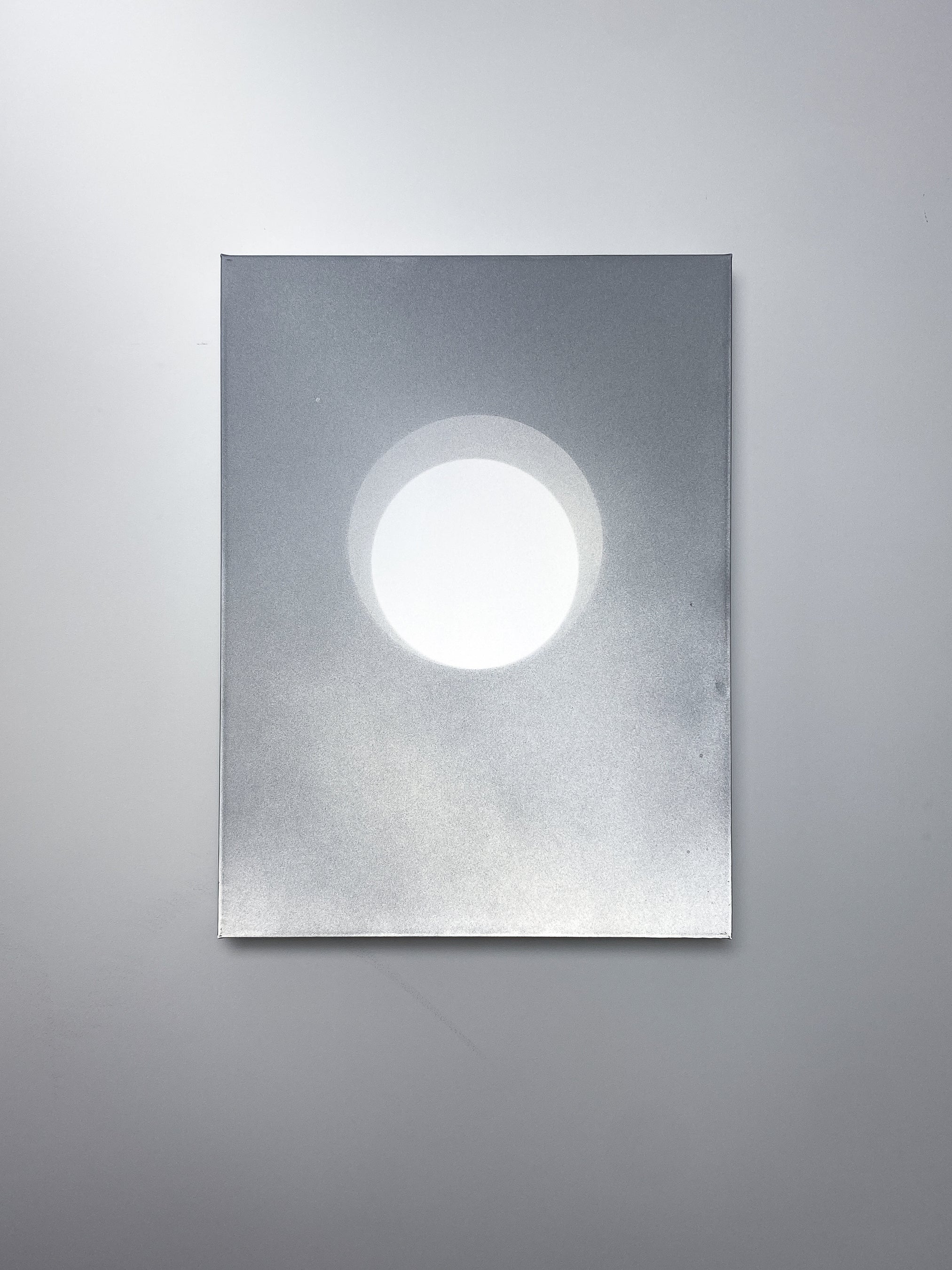 リン・ショウキは、空間主義の理論から影響を受け、長年にわたって知覚、光、空間に焦点を当てた作品を探求してきました。中国で生まれ、長年のアートキャリアを経て、2018年より東京を拠点に活動しています。最新作品は、19世紀の光学研究を起源とし、現代ではスポーツウェアの素材としても使用される、再帰性反射素材を用いて制作。円や四角といった幾何学的形態と即興的な抽象表現を組み合わせています。反射素材の特性により、見る角度や光によって作品は表情を変え、常に変化し続ける視覚体験を提供します。