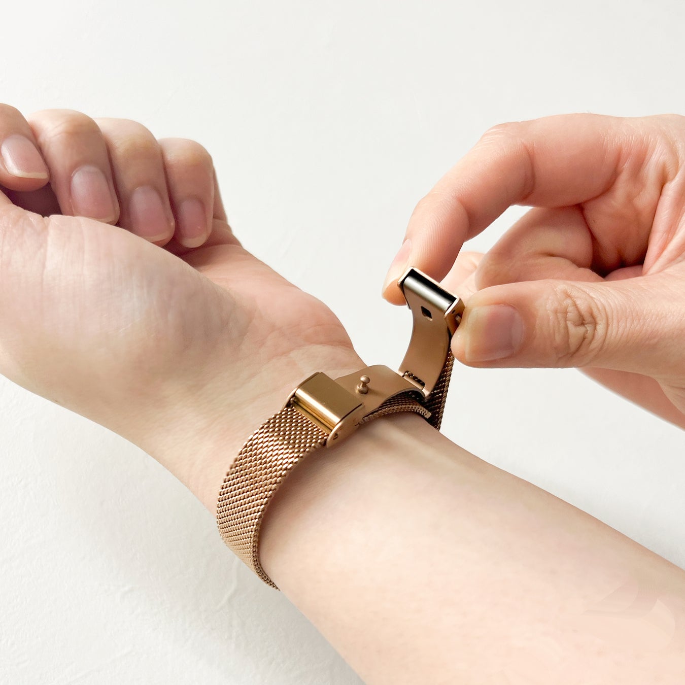 革バンドにはワンタッチバックルを装備。また通常、ワンタッチバックルがつかない仕様が多いメッシュバンドにもワンタッチバックルをセットしています。