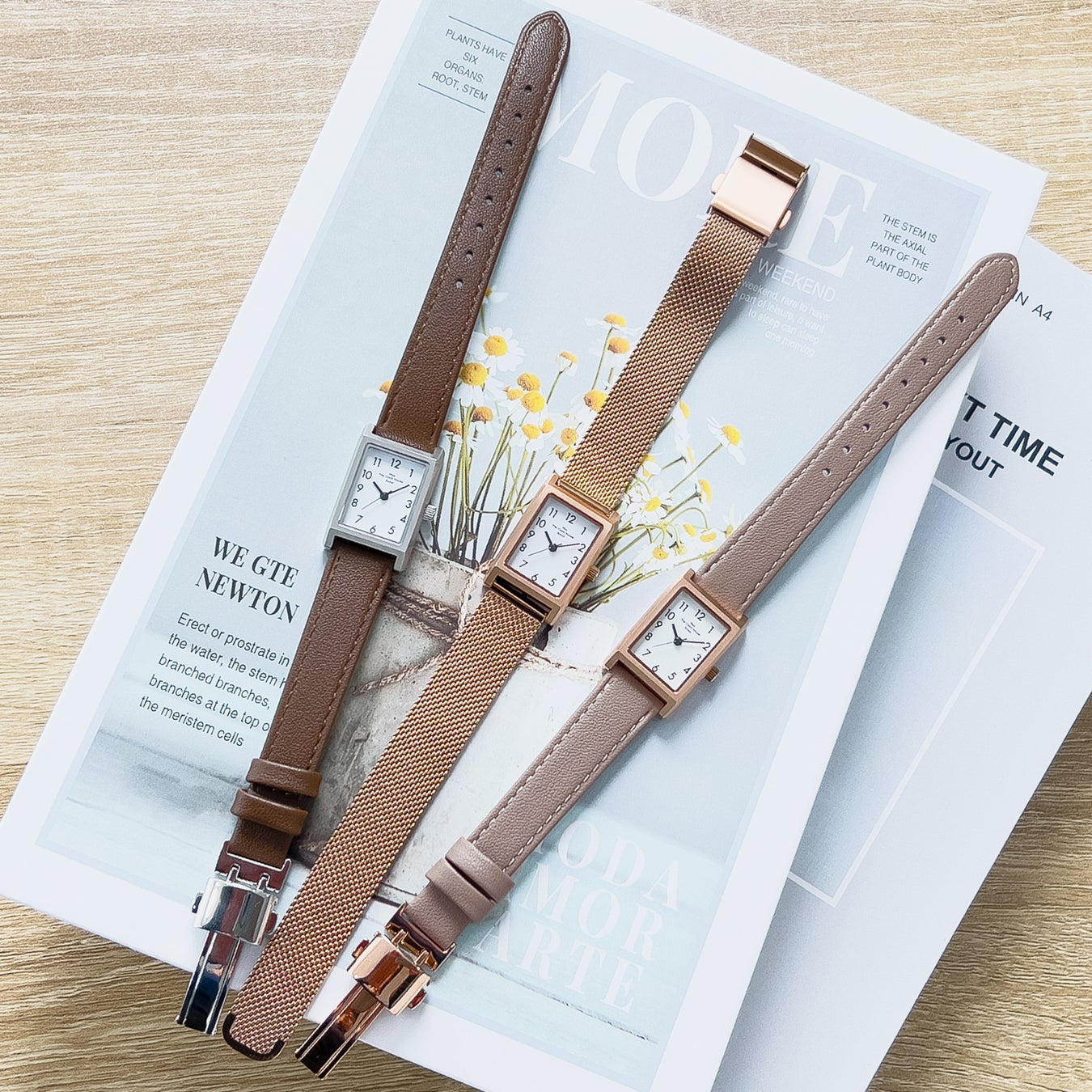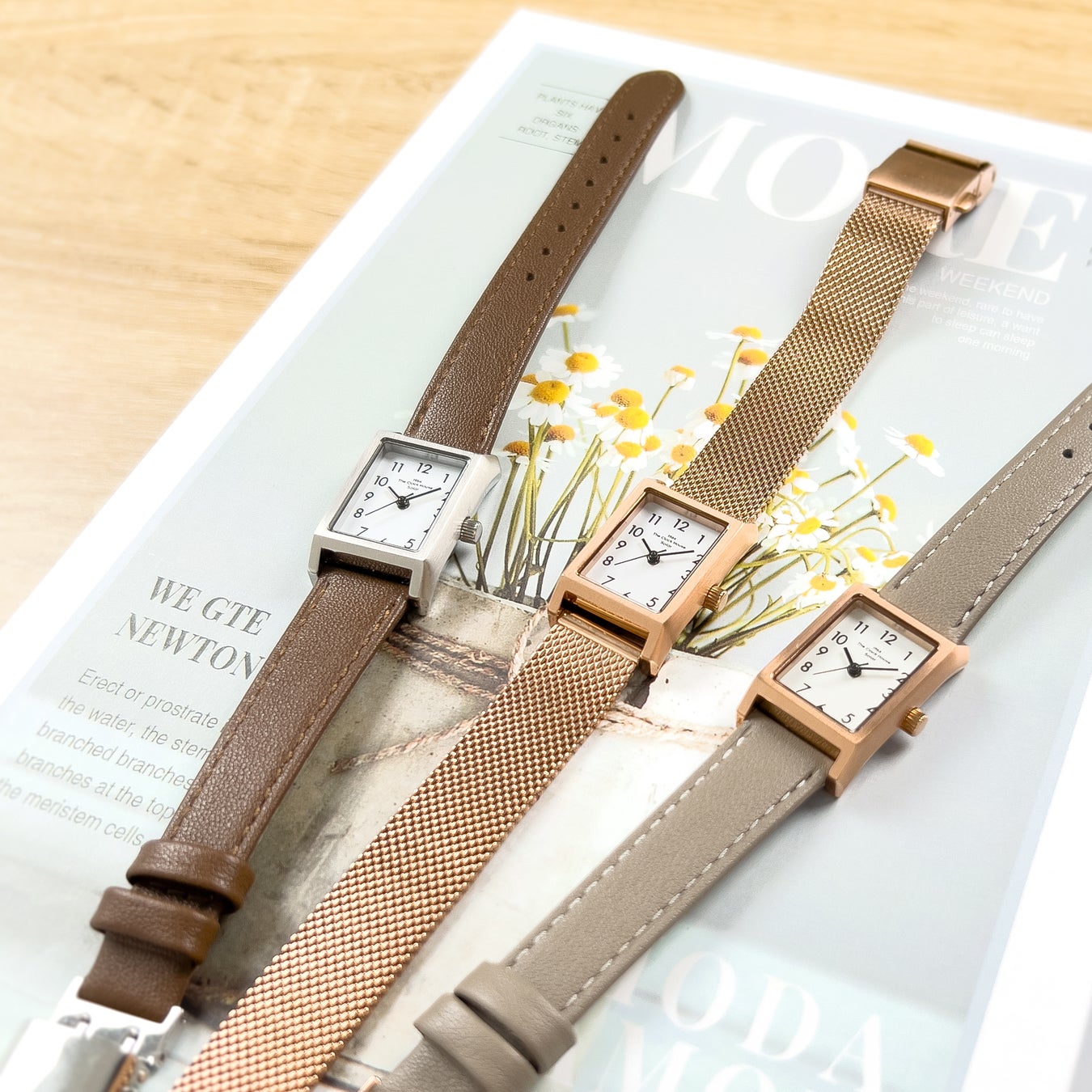 これまでのコンセプトはそのままに、レクタングル(長方形)ケースやピンクゴールドカラー、グレージュカラーなど新たなエッセンスを加えた6モデルが仲間入りします。