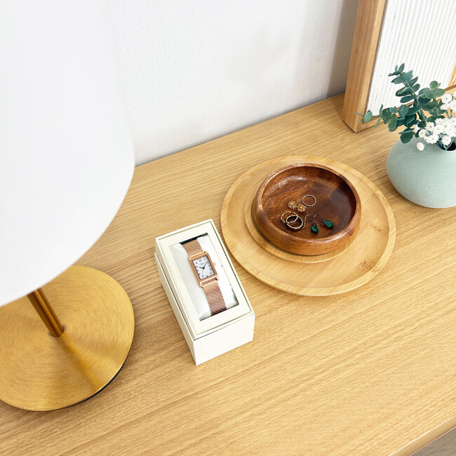 時計を使用しないときは、文字盤を上にして机の上に置いておくだけ。室内の明かりでも充電を行います。