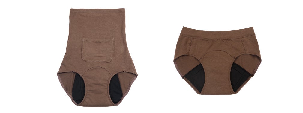 「腹巻吸水ショーツ」は、ブラック、グレー、モカ、ピンクモカの4色展開。「腹巻吸水ショーツ」同様に温活にアプローチしているものの、腹巻と一体化していないデザインの通常の「吸水サニタリーショーツ」は、この4色にさらに健康状態や汚れが視認できるよう、マチ部分にグレーの素材を使用した、ブラック2を加えた5色展開なので、気になる色を1色ずつチョイスして、昼夜やその日の気温などで穿き分けるのもおすすめです。