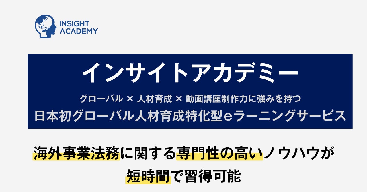 グローバル人材育成・研修業を手掛けるインサイトアカデミー株式会社(本社:東京都港区六本木、代表取締役:北村 嘉章)は、西村あさひ法律事務所在籍の弁護士である山中氏、廣澤氏、吉本氏が監修するグローバル人材育成講座をリリースしました。