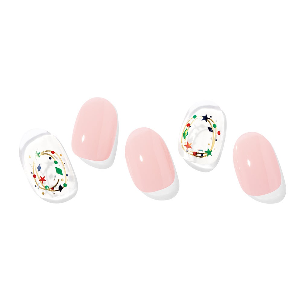 従来のネイルシールとの違いは、柔らかく伸縮性があり、どんな形や大きさの爪にも簡単にフィットしやすいのが特徴。(※仕上げにはジェルランプが必要です)ベース、カラー、トップの3層ジェル構造にすることで、より鮮やかな発色と光沢感、そしてジェルならではのぷっくりとしたボリューム感を実現。