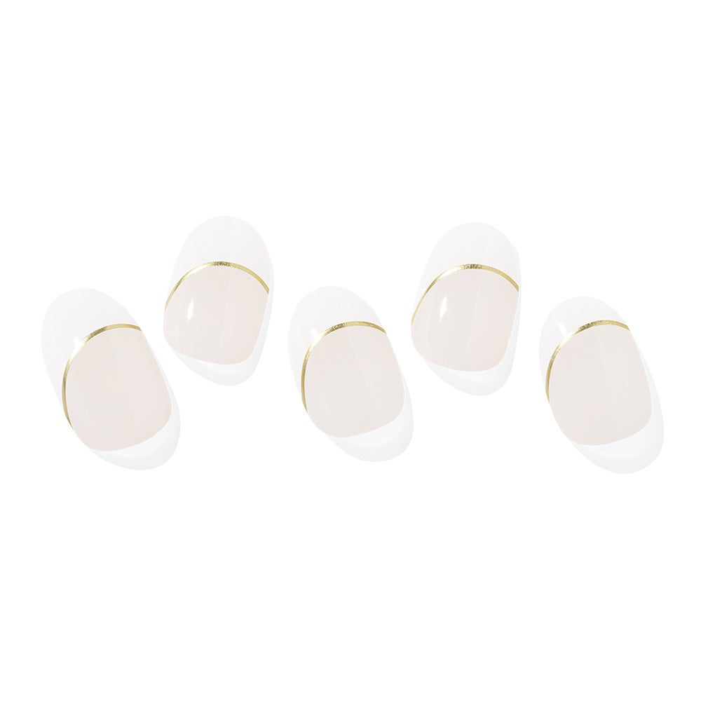 優美な曲線を描くホワイトフレンチネイル。透明感のあるベースにピュアなホワイト、金のラインをあしらった洗練度の高いデザイン。シンプルだからこそ、曲線の美しさが引き立ち、指先の存在感を高めます。ウェディングネイルとしてだけでなく、ちょっとあらたまった日のネイルとしても最適。パールや金の繊細なアクセサリーとも相性が抜群です。