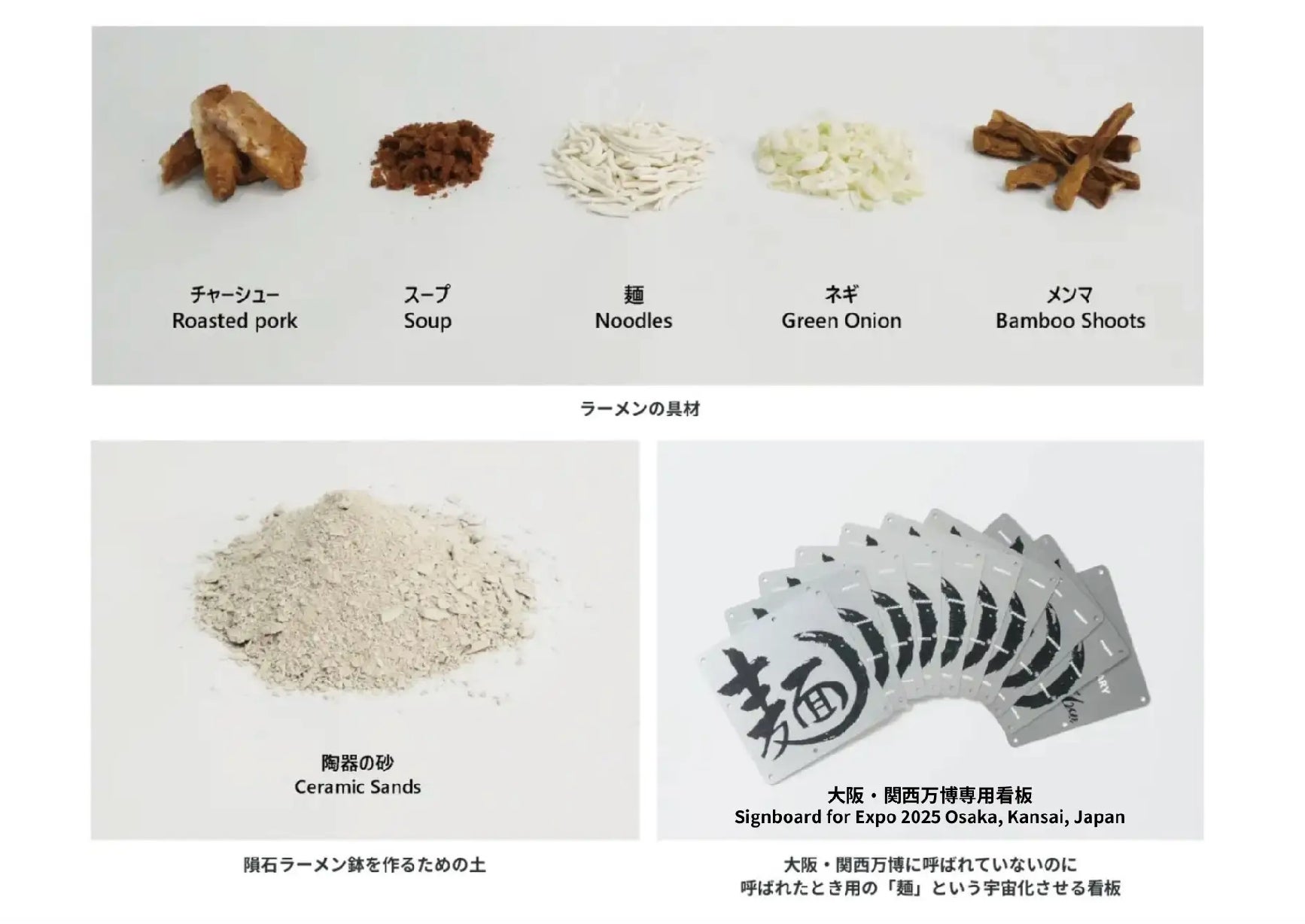 1. 日本の土を宇宙に持っていき、持ち帰ってきた土をもとに「隕石ラーメン鉢」を製作する。