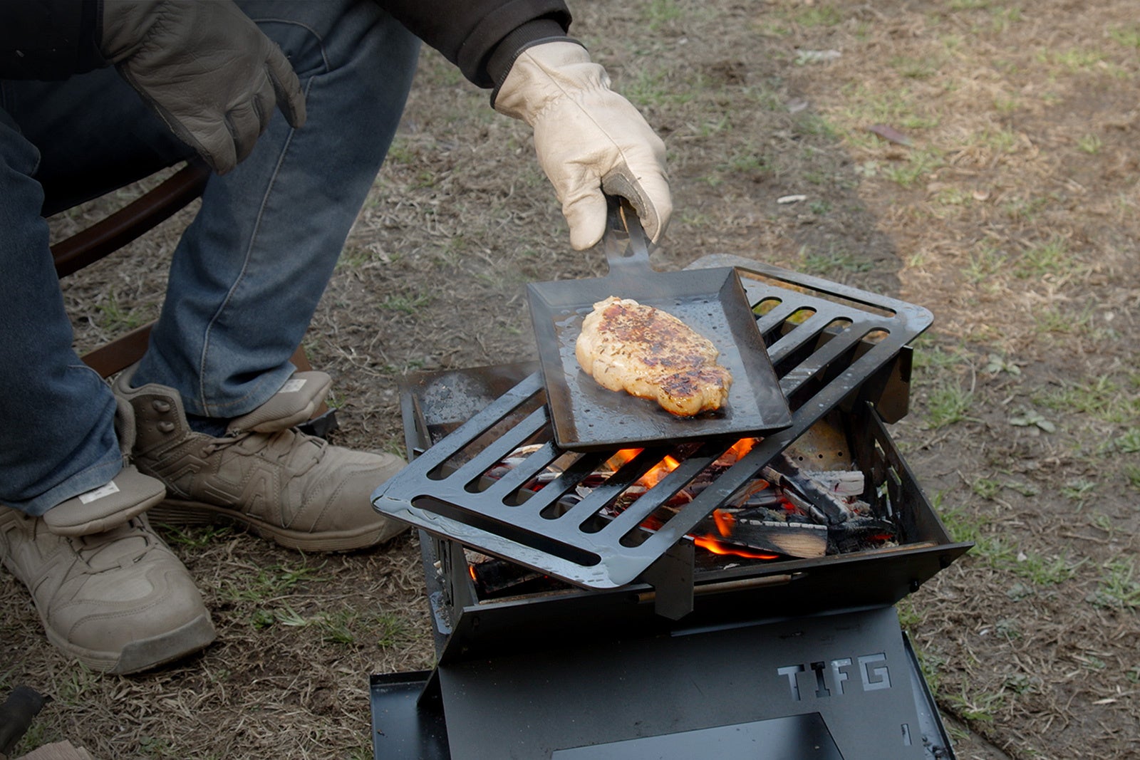 - 焚き火調理がしやすく、スモーキーな風味もプラス