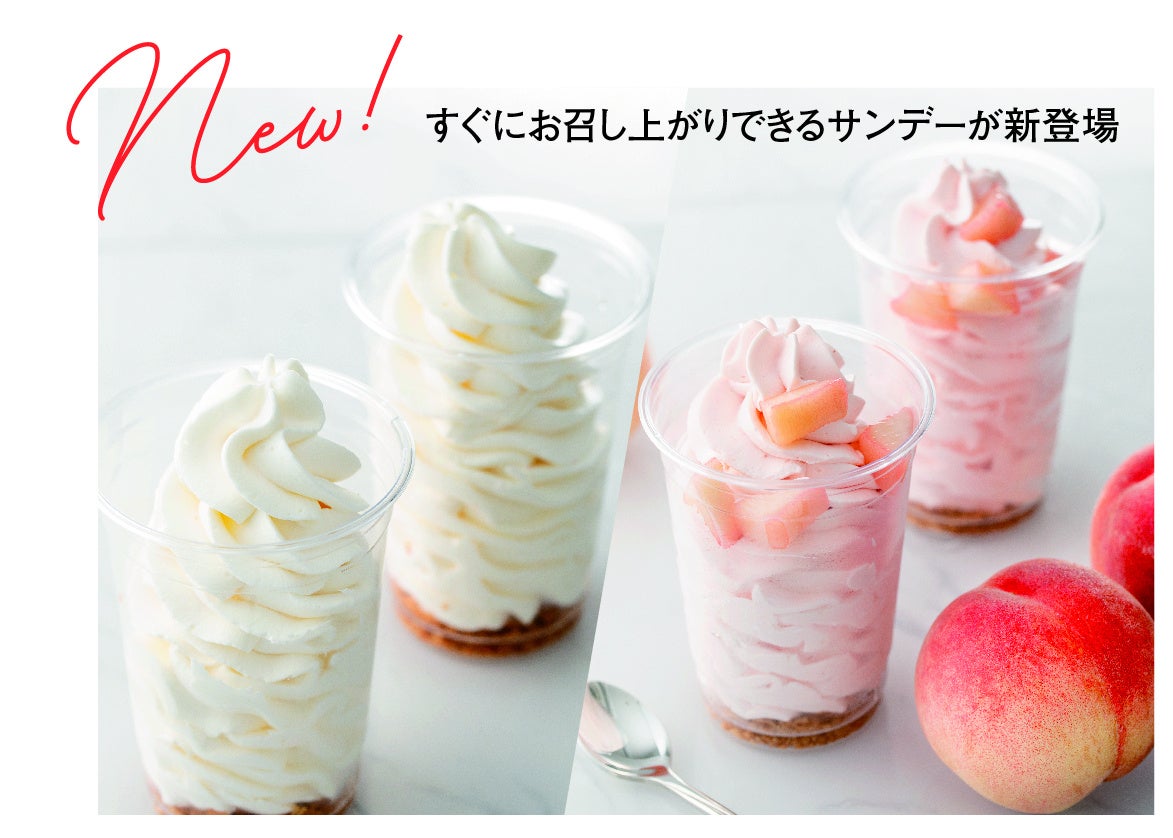 モンシェールファームの生乳と九州産フルーツを使ったソフトサンデー北海道・中標津町のモンシェールファームより直送されたミルクで作ったソフトサンデー。まるで生乳を飲んでいるかのような、濃厚なコクがあるのにいくらでも食べられそうなほど軽やかな後味が特長です。シンプルなミルク味のほか、季節の果実を使った限定フレーバーもご用意。販売価格:ソフトミルクサンデー 451円/ソフトミックスサンデー 481円桃のソフトミックスサンデー 540円/ダブル桃のソフトサンデー 580円(すべて税込)