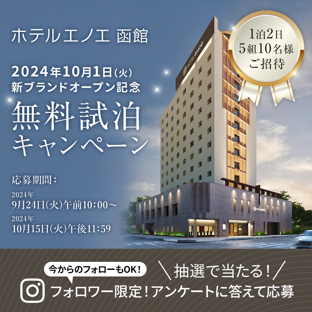 新ブランド『ホテルエノエ函館』誕生!2024 年10 月1 日(火)リブランドオープン 開業を記念して、無料試泊キャンペーンを実施