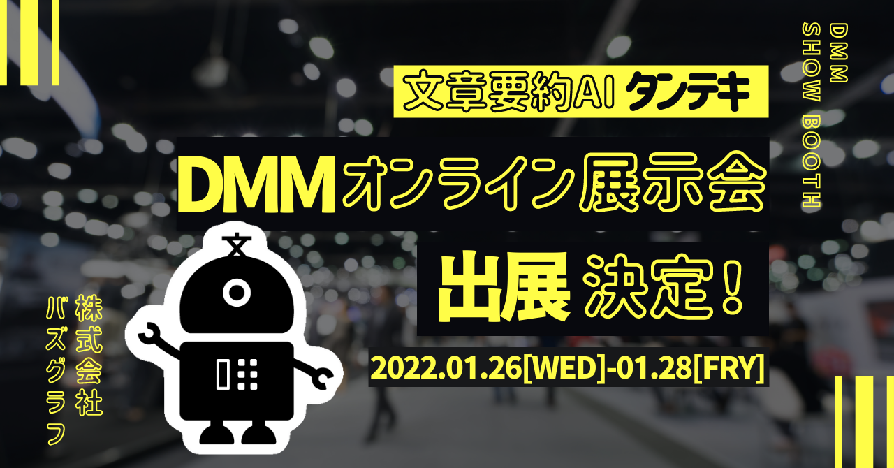 1月26日より開催!コロナ禍で注目が高まるDMMオンライン展示会に初出展【文章要約AI「タンテキ」】