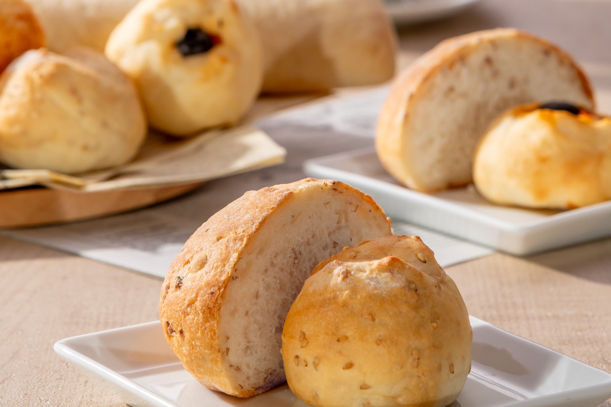 スキムミルクでコクをプラスするなど、シェフが食事に合う調合を行うパンは