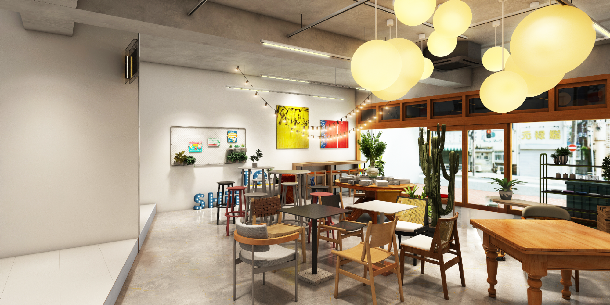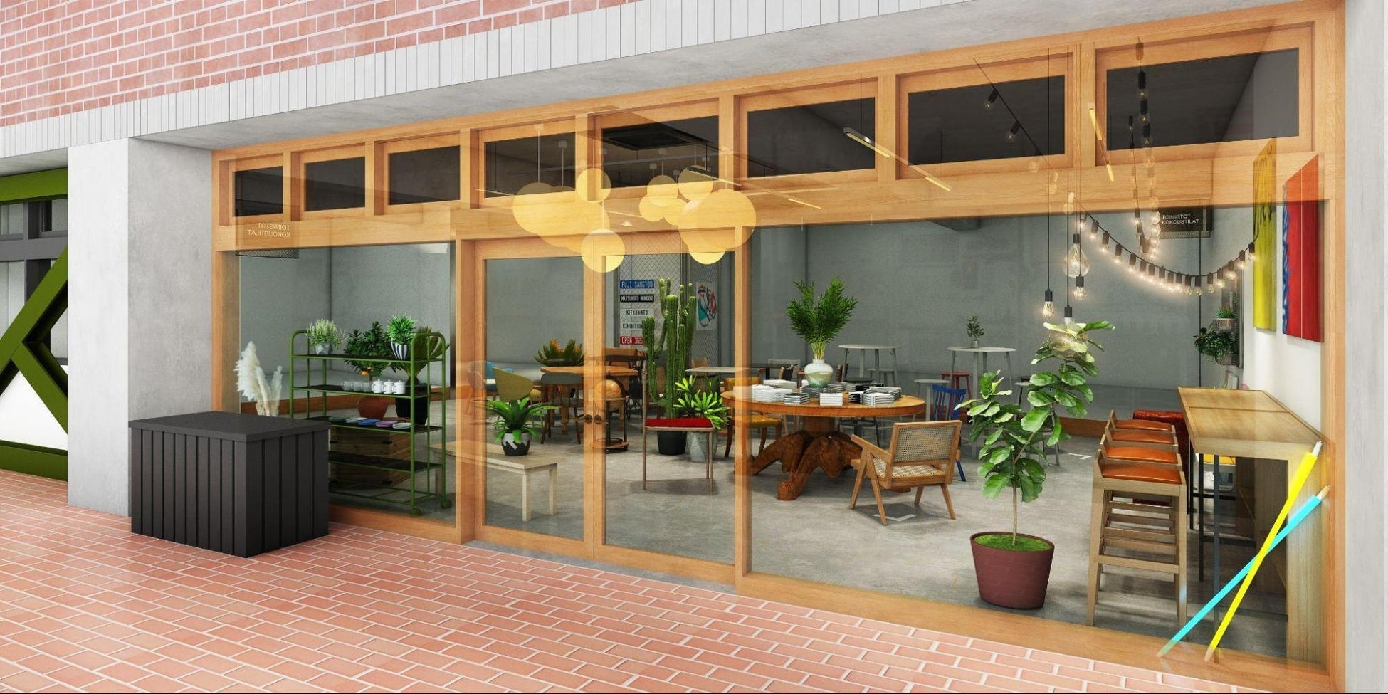 ■建物の無骨さとテナント区画・調度品の柔らかさが調和した空間