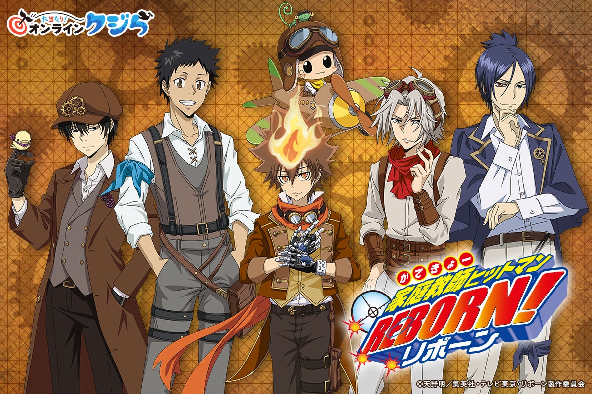 TVアニメ「家庭教師ヒットマンREBORN!」より、スチームパンク風描き下ろしイラストを使用したオンラインくじが登場します。「オンラインクジら」でしか手に入らないグッズが盛りだくさんです。