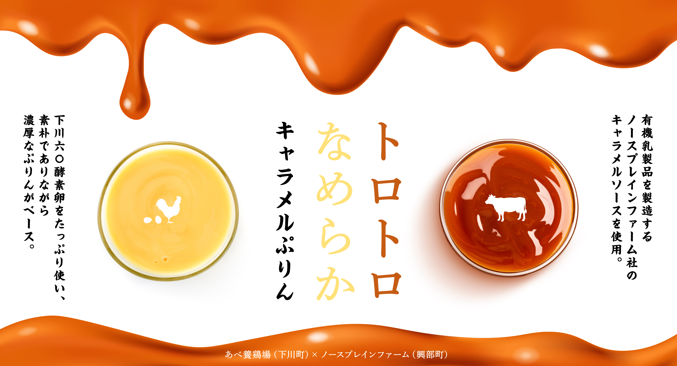 北海道・オホーツクの牧場から素材にこだわった安心でおいしい乳製品を直送でお届けするノースプレインファームとあべ養鶏場がコラボレーションした『キャラメルぷりん』が期間限定で登場!