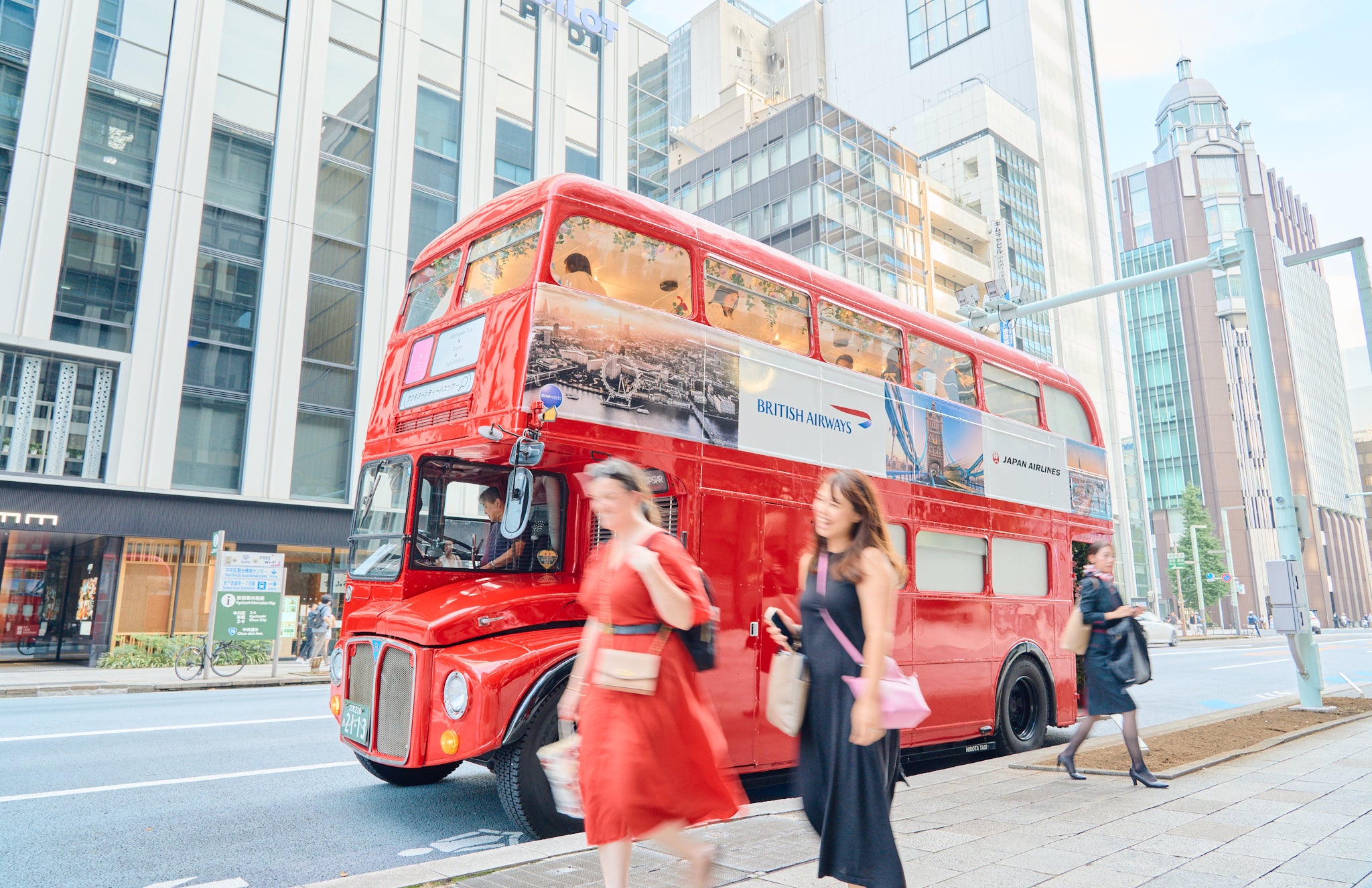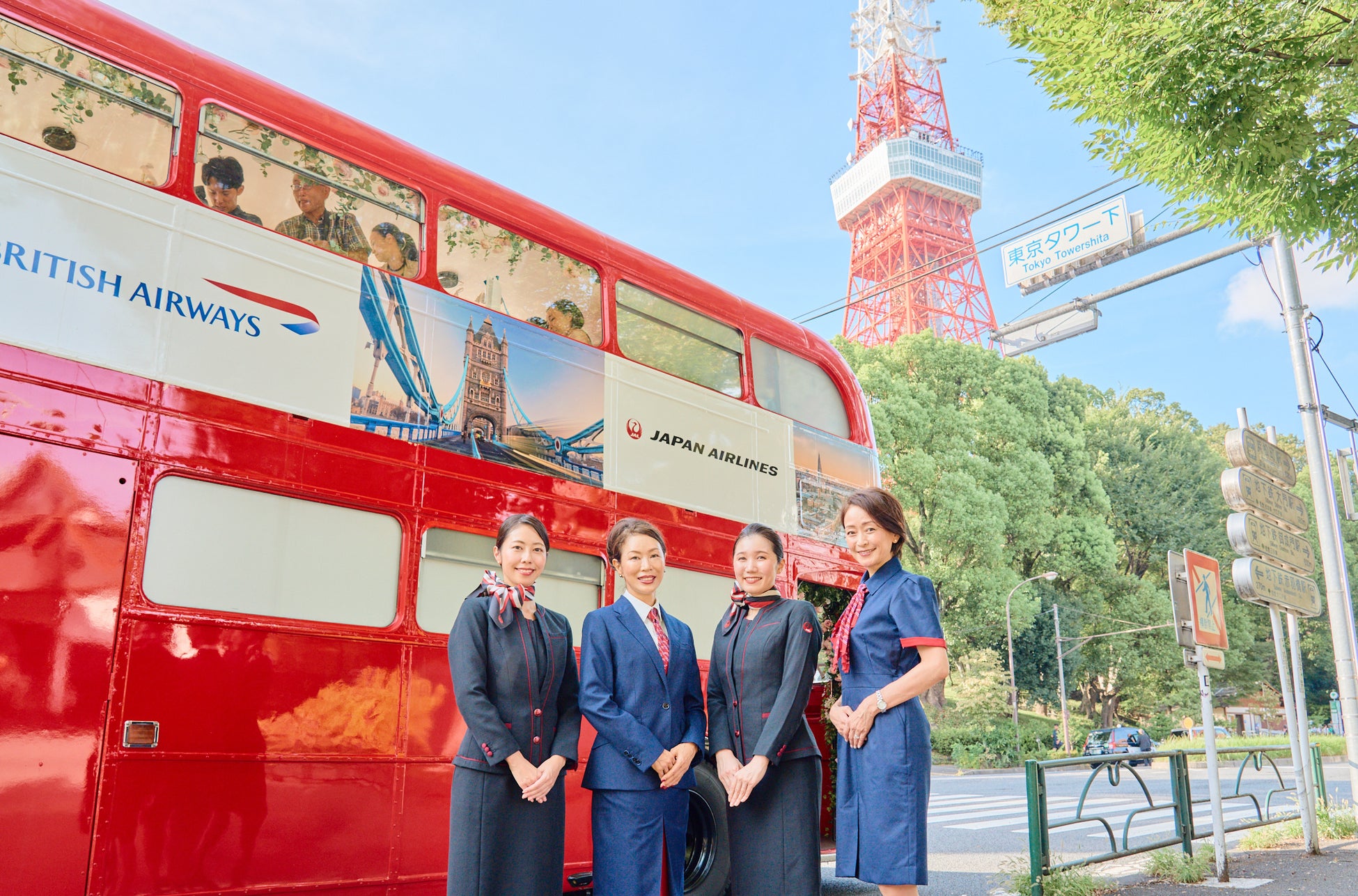 【共同企画で特別ツアー実施】日本就航75年の歴史を有するブリティッシュ・エアウェイズと、世界クラスのサービスで名高い日本航空が共同で、アフタヌーンティーバスツアーを開催しました。