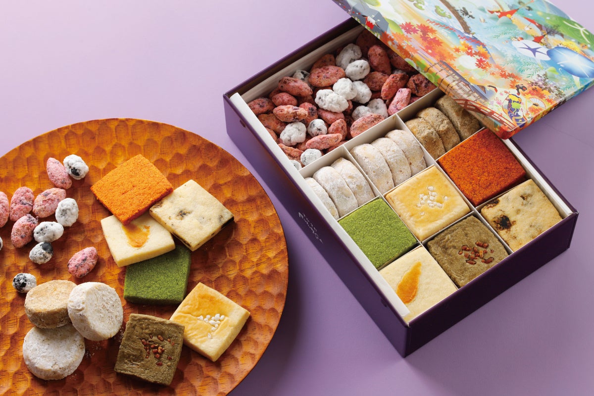■大徳寺納豆のクッキー ■和束のほうじ茶のクッキー ■西京味噌のクッキー ■万願寺唐辛子のクッキー ■伏見の酒粕クッキー ■宇治抹茶のクッキー ■丹波 黒豆きなこのブール・ド・ネージュ ■清水 七味唐辛子のブール・ド・ネージュ ■京都 水尾のゆずのブール・ド・ネージュ ■大原の赤紫蘇アーモンド ■丹波黒豆のグラッセ