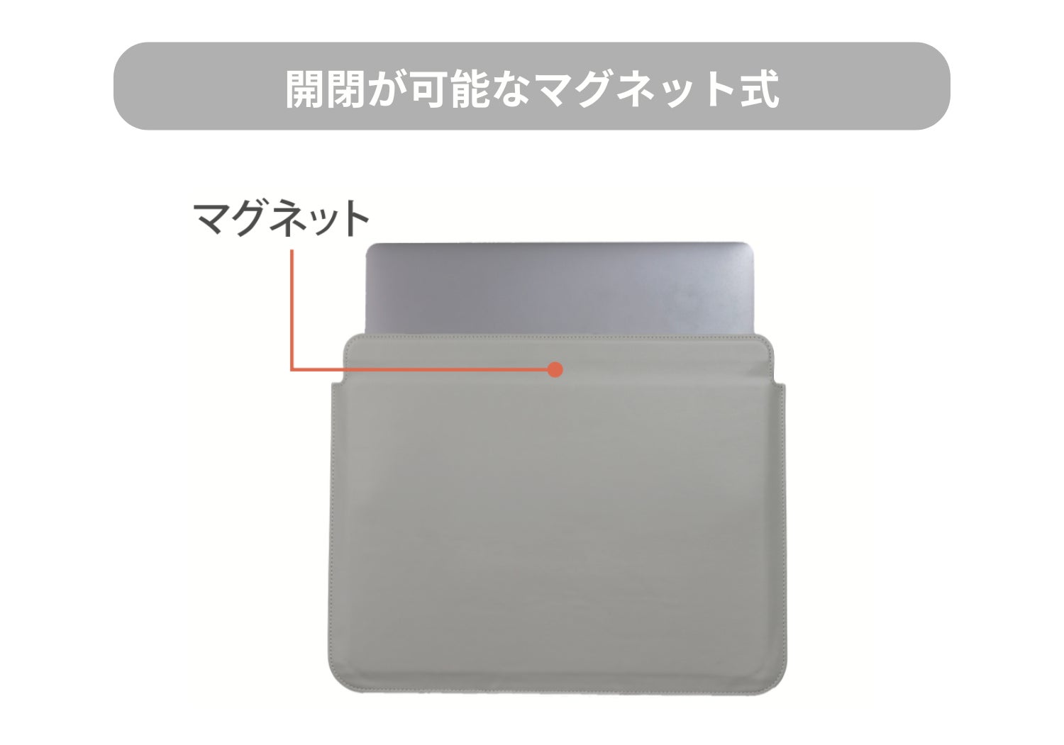 マグネット式で素早く開閉できるため、パソコンをサッと取り出して使用できます。スムーズに出し入れできるので、作業効率のUPにも◯