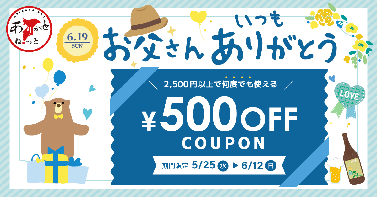 【父の日ギフトがお得に!】500円割引クーポンが期間中何度でも使える!<ありがとねっと>