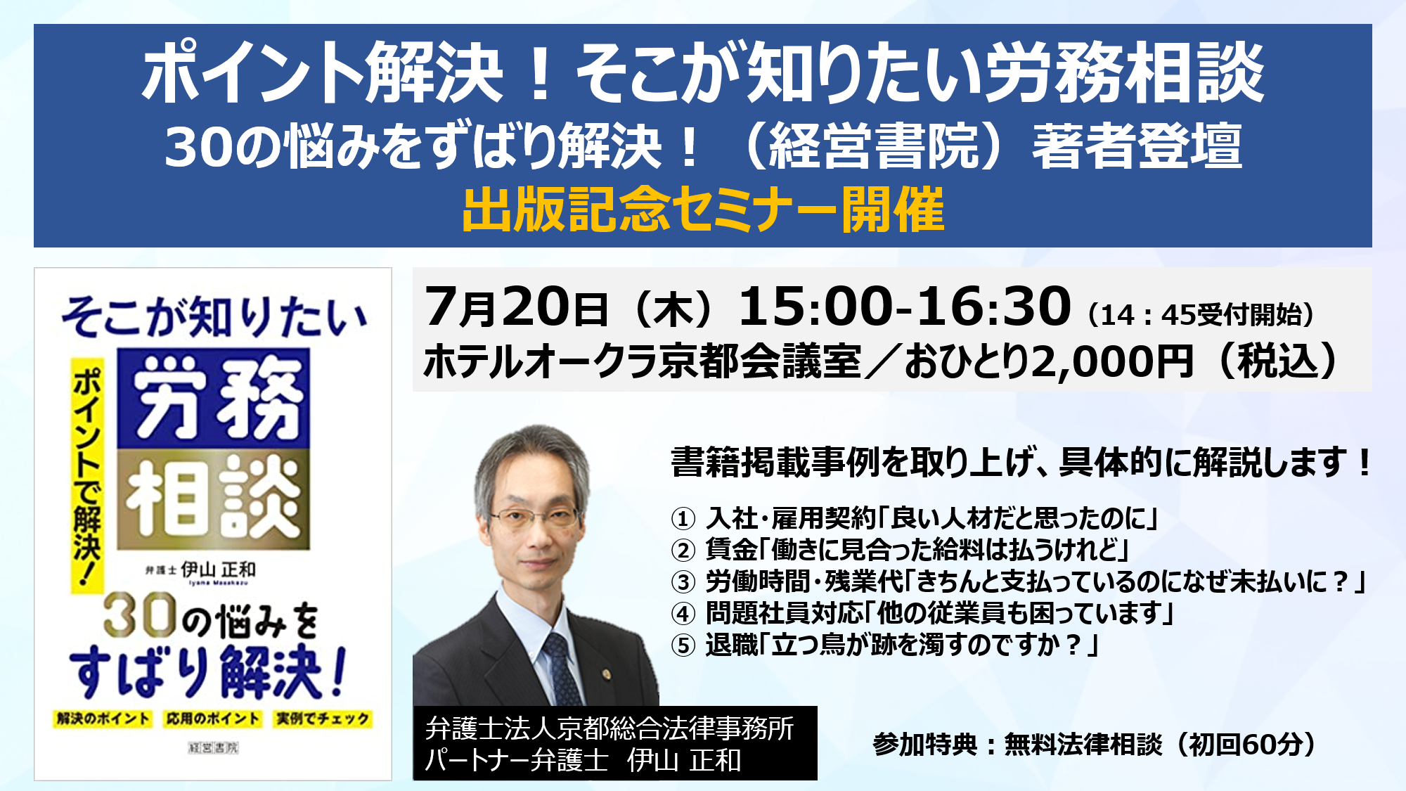 『ポイントで解決!そこが知りたい労務相談』 出版記念セミナーを7月20日(木)に開催