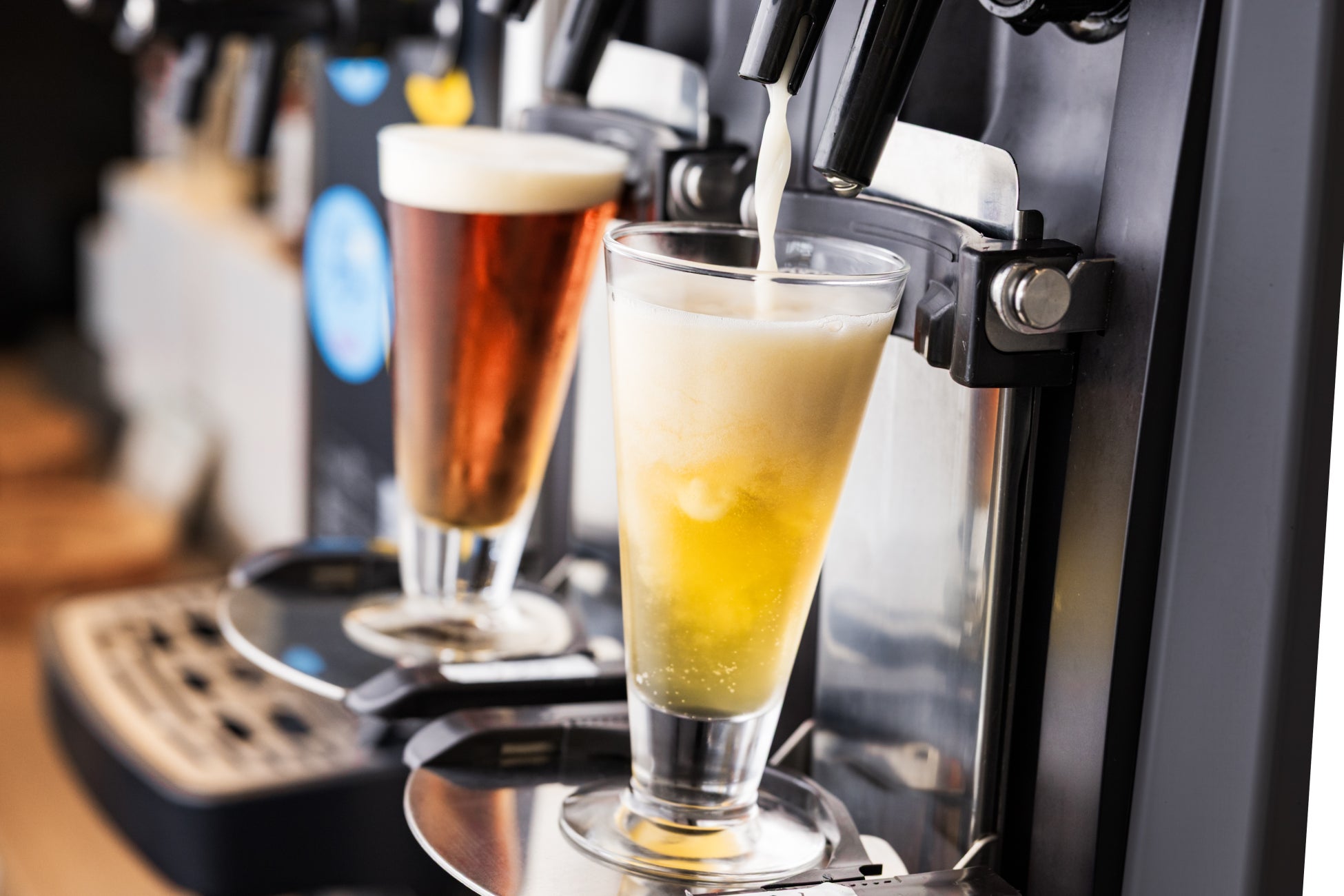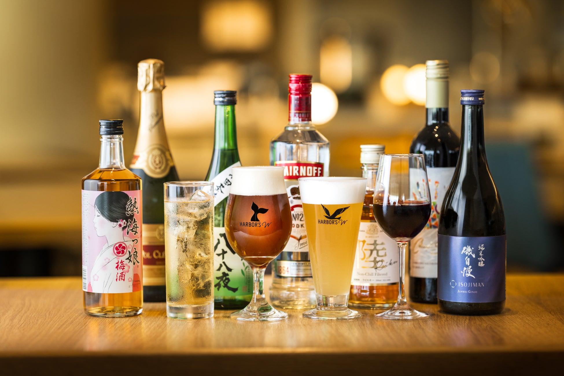 夕食ブッフェ会場であるレストラン「HARBORʼS W」とスカイレストラン「TOP・OF・ATAMI」では、夕食ブッフェご利用のお客様に、ビールやワイン、ウイスキー、日本酒、焼酎など、約25種類のアルコールをご用意しております。その中でもおすすめなのは、HARBORʼS Wオリジナルクラフトビールや、「磯自慢」などの地元静岡県の日本酒です。また、お酒が苦手なお客様やお子様にもお楽しみいただけますように、合わせてソフトドリンクもフリーフローとしてご提供しております。