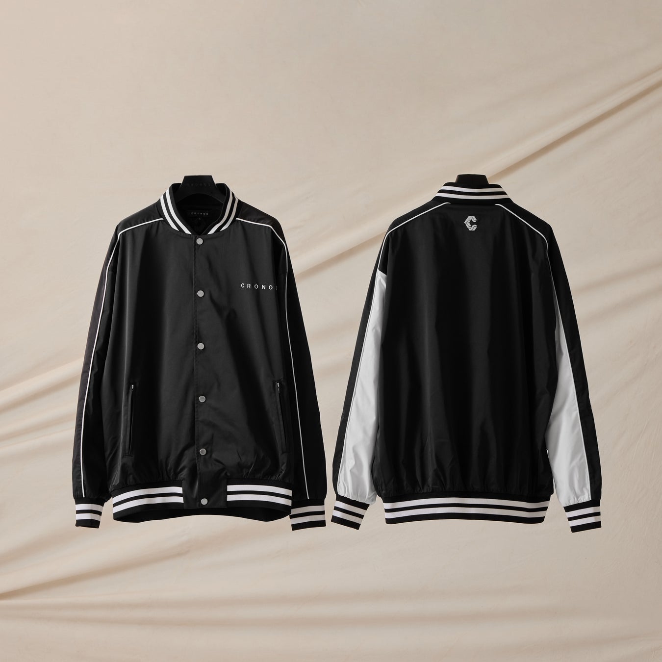CRONOSのブランドカラーであるモノトーンを基調とした配色の両店舗は、店外からも視認性の高いCRONOSのアイコニックなロゴを壁面へ大胆にディスプレイし、CRONOSのアイテムにもデザインされているツートンカラーの切り返しを店内の様々な什器に落とし込んだスタイリッシュ且つモダンな内装に仕上げました。CRONOS岡山店は中四国エリア初の出店となり、CRONOS千葉店はJR総武線「千葉駅」の目前に位置する店舗となります。展開アイテムとしては、タウンウェアとしても着用できるスタイリッシュなデザインのアクティビティウエアを提案する「MENS」と「WOMENS」をラインアップ。新作アイテムとして、MENSからはCRONOSらしい配色で切り返しを加えたスタジアムジャケット、ロングスリーブTシャツ、オーバーサイズTシャツなどを展開し、WOMENSからは縦横に伸びる4WAYストレッチ素材を採用したジャケットとパンツのセットアップ、ショート丈のシャツやパーカ、スウェットパンツなどをローンチいたします。