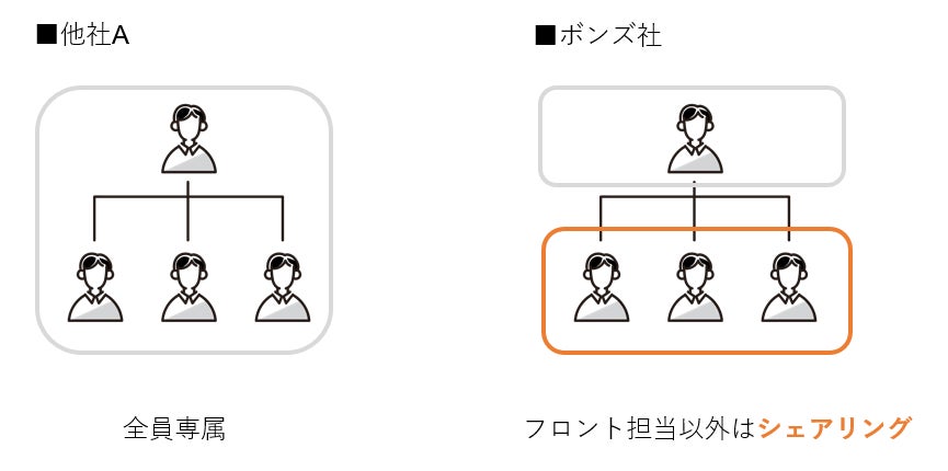 多くの代行業者は、品質確保のため企業様専属のスタッフで体制を組みます。