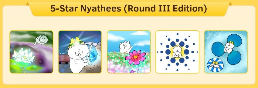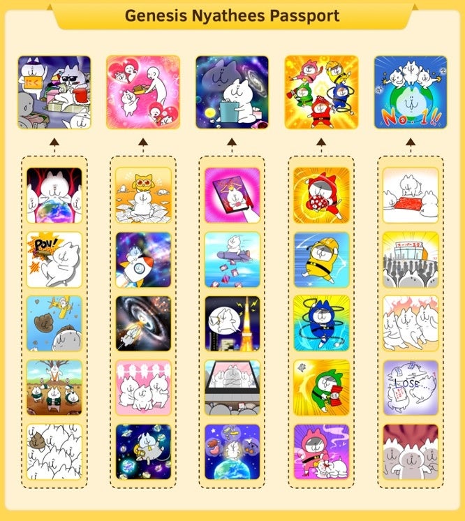 概要:上記5枚のカードを集めると、にゃっちーずジェネシス(Genesis)NFT交換チケットを獲得できる。交換チケットを所有するユーザーは、第4弾にゃっちーずアバターでリリースされるジェネシスNFTと交換可能。
