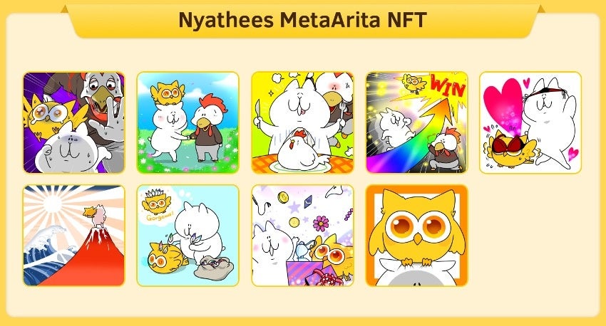 にゃっちーず(Nyathees)NFTはDao Chainが運営するNFTプラットフォームovo.spaceで発行されているコンテンツであり、すべてイラストレーター/漫画家かわベーコン氏が描き下ろしたオリジナルイラストを用いている。
