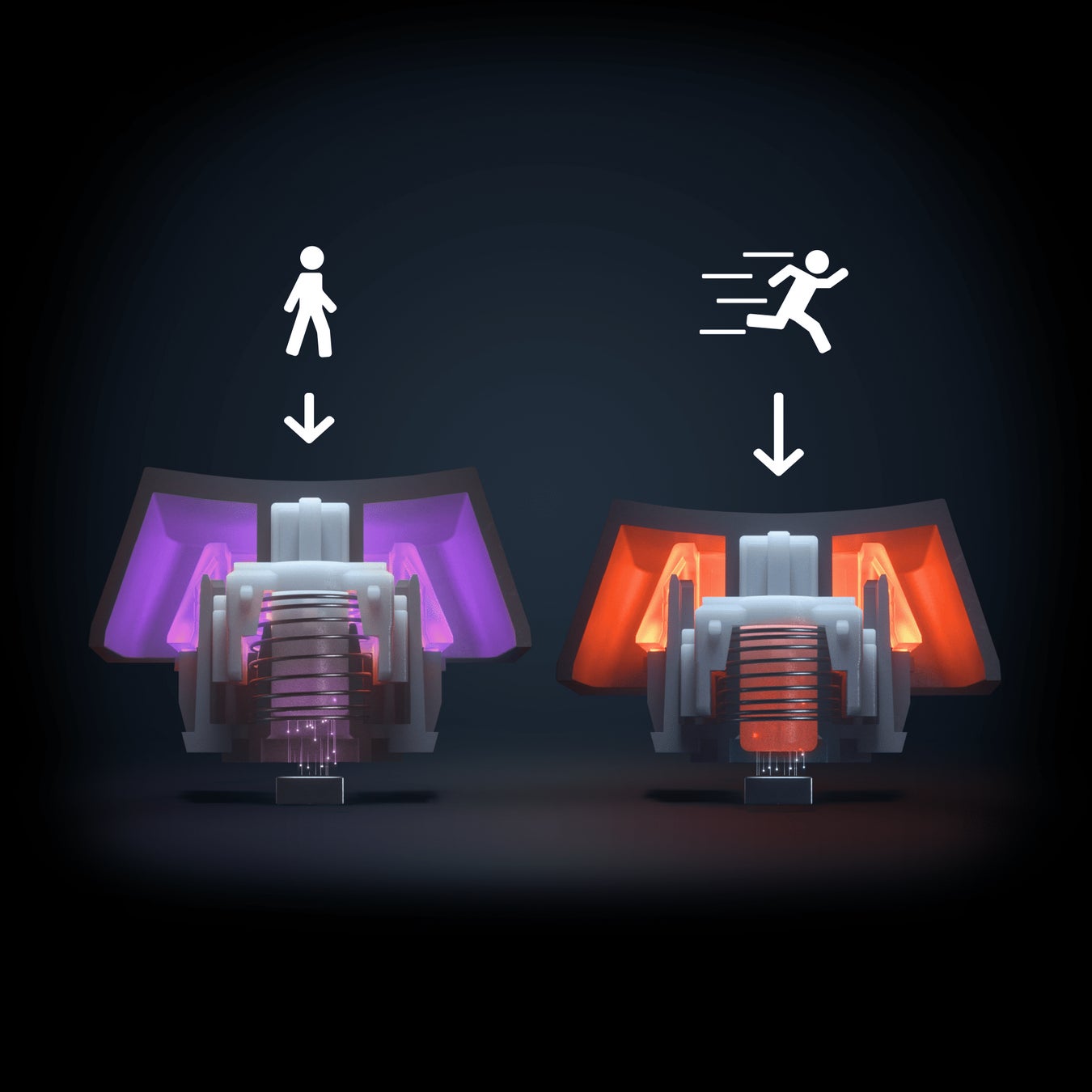 キーを軽く押したときは前に歩き、同じキーを深く押すと走るなど、キーの押し方に応じて、1つのキーに2つのアクションをプログラムすることができます。