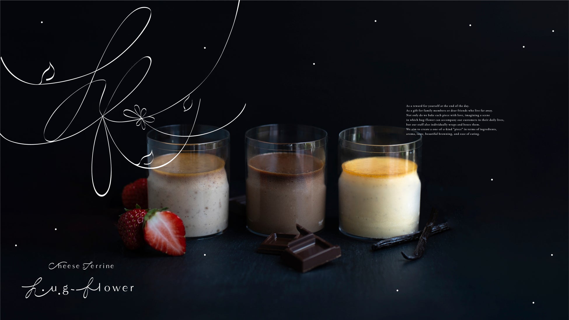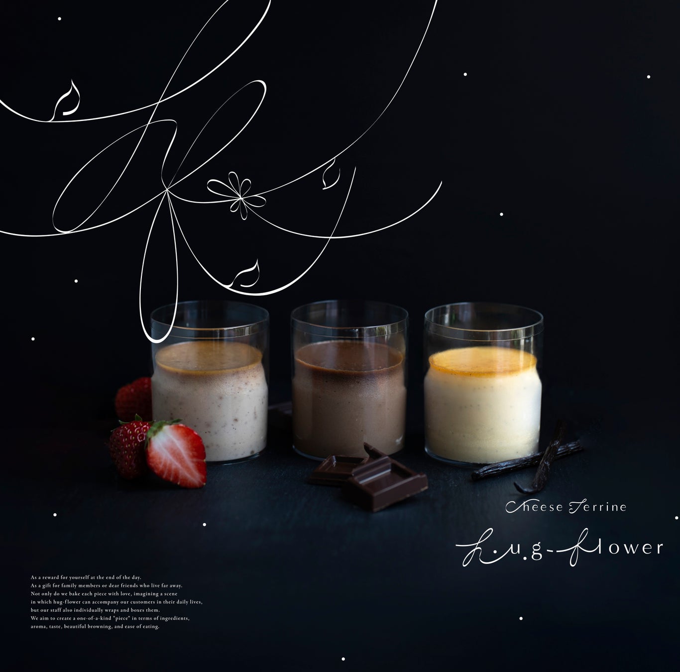 h.u.g-flowerのチーズテリーヌは、もともとワインバーでお出しするスイーツとして生まれました。一人でワインバーを訪れたお客様が、気兼ねなくワインと一緒に楽しめるような、大人の美味しさを目指したことがルーツです。そんなh.u.g-flowerのチーズテリーヌは、性別・年代問わず好評いただいています。チーズケーキ好きの方や大切な方への贈り物、また企業様のお手土産にも人気です。今回発売する「カップスタイルチーズテリーヌ」も、大切な人への贈り物としてはもちろん、様々なシーンでじっくりお楽しみください。