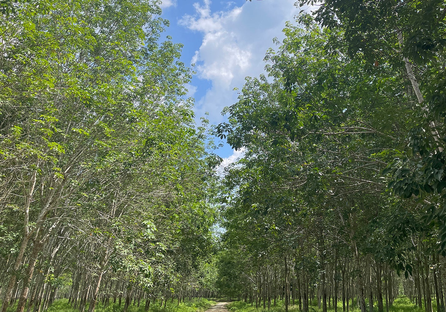天然ゴムの樹液採取後の木をリサイクル使用し環境にも配慮。