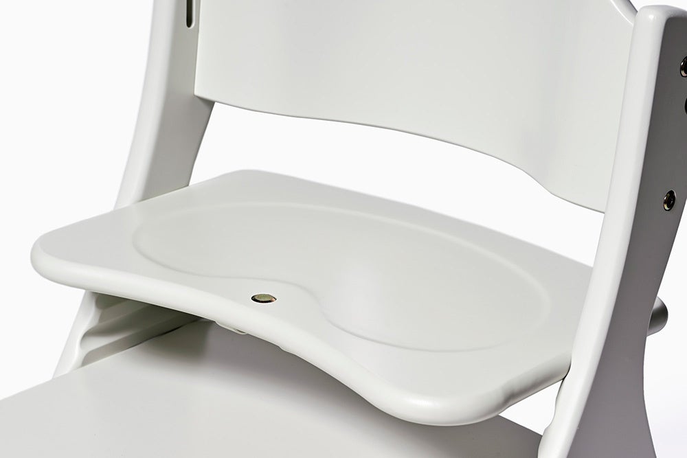 子どもを支えるガードはベルトから木製に変更を行い、チェア全体の色合いを損ねることなく、さらに食べこぼしなどが拭き取りやすい機能性もアップ。