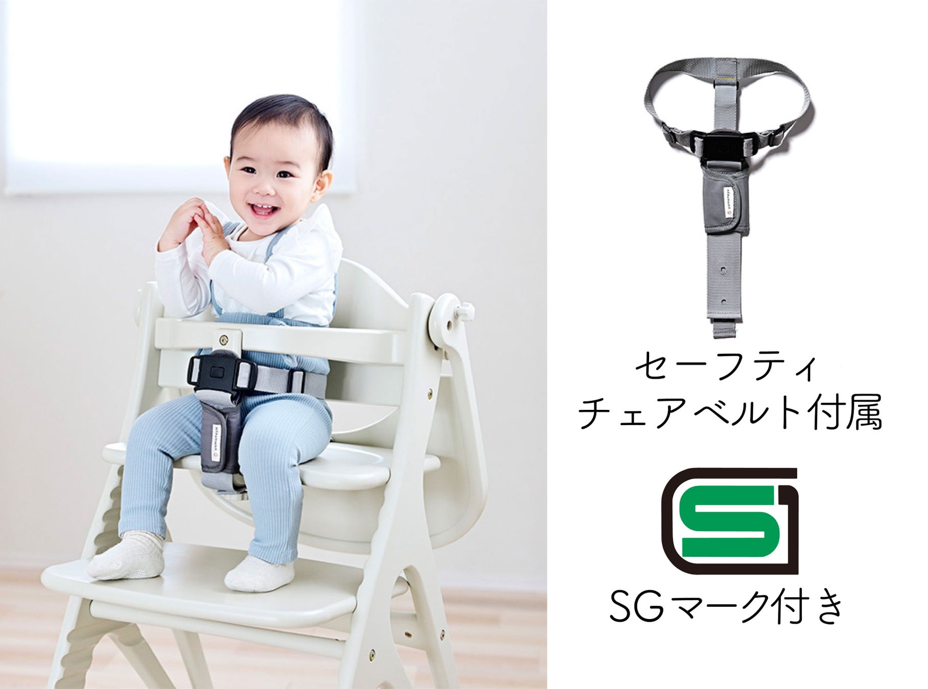 立ち上がりをしにくくする「セーフティチェアベルト」が付属となり、日本の「SG基準」の認証に加え、ヨーロッパの「EN基準」もクリア。